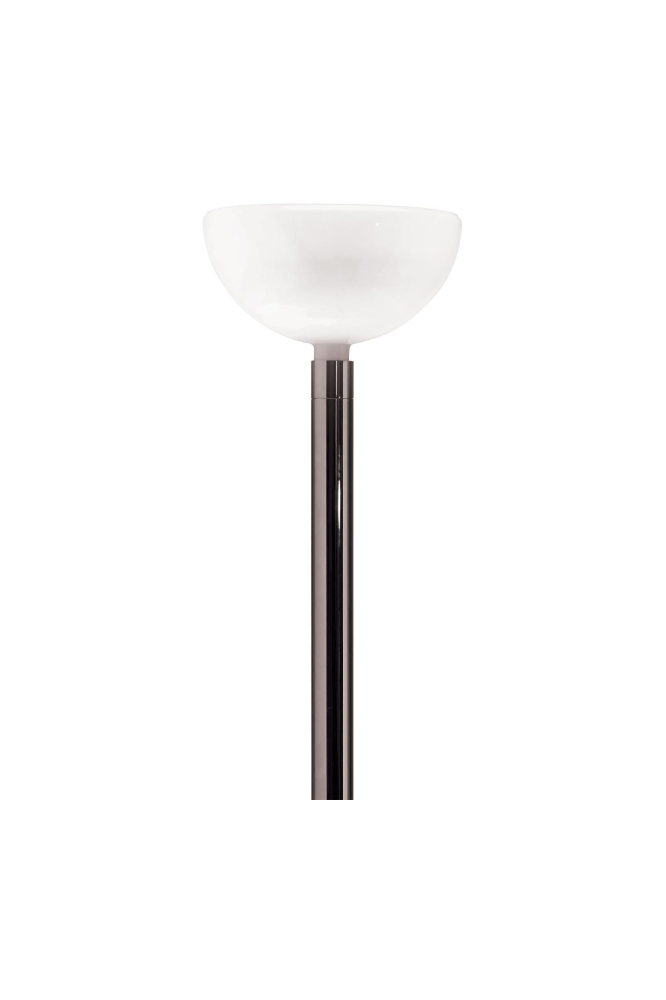 AM2C besticht durch ihr zeitloses und elegantes Design. Sie ist eine puristische Stehleuchte mit einer Struktur aus glänzendem Stahl und einem halbrunden Schirm aus opalweißem Glas. Das Licht wird diffus gestreut. Die Lichtstärke kann individuell mit dem integrierten Dimmer variiert werden. Lineare oder gebogene Leuchtstäbe aus verchromtem oder schwarz verchromtem Stahl und halbrunde Schirme aus opalweißem Glas sind die Hauptmerkmale der Franco Albini Kollektion von Nemo. Diese Kombination wirkt stets kühn und zugleich sehr elegant.