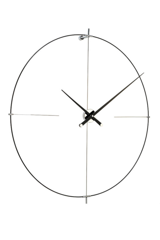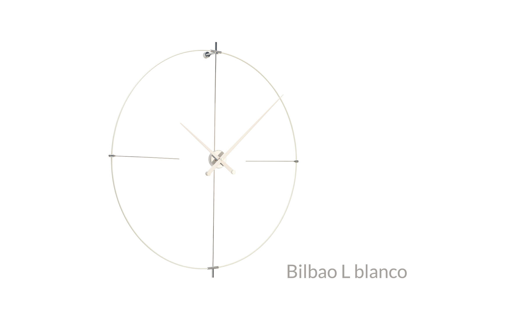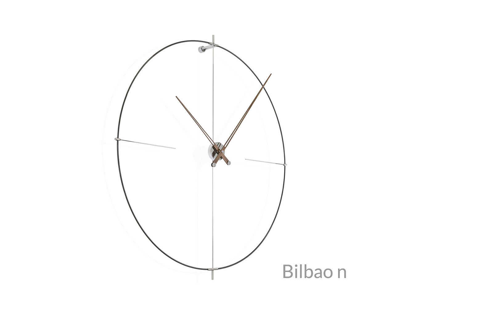 Bilbao Wanduhr Die Bilbao, ein Prunkstück aus der Kollektion Nomon von Barcelona. Die Designuhr wirkt mit dem einfachen Ring und den Zeigern aus Fiberglas und Nussbaumholz wie eine Kombinbation der Industrie und der Natur. Die batteriebetriebene Uhr mit minimalistischem Design wird an einem einzigen Punkt an der Wand installiert. Die Uhr gibt es in 3 Varianten:  weiss lackierte Holzzeiger, weisss Fiberglas und verchromten Details oder schwarz lackierte Holzeiger, schwarzm Fiberglas und verchromten Details  oder den Zeiger aus Nussbaum, schwarzes Fiberglas und verchromten Details Schöner kann die Zeit in deinem Zuhause, an der Hotelrezeption oder überall sonst, nicht angezeigt werden.