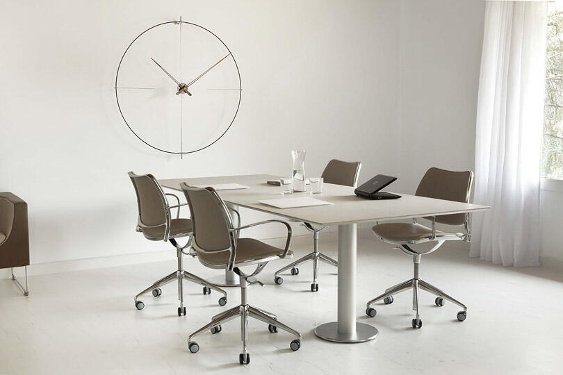 Die batteriebetriebene Uhr mit minimalistischem Design wird an einem einzigen Punkt an der Wand installiert.