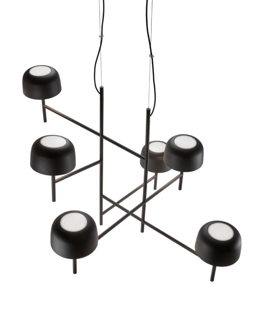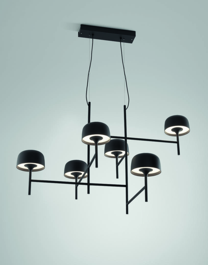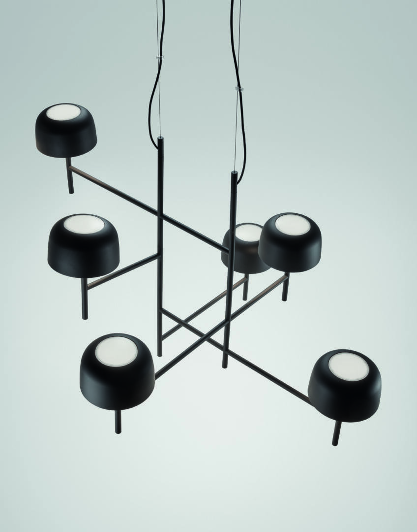 Die zentrale Struktur einer Bol-Leuchte besteht aus verschiedenen Stielen und Schirmkörpern, die über einen zentralen Stab miteinander verbunden werden können. Auf diese Weise können unterschiedliche Formen sowohl horizontal als auch vertikal und sogar in kontinuierlicher Abfolge gestaltet werden.