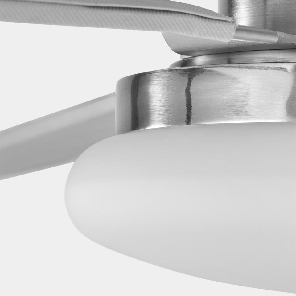 CALIMA ist ein leiser Deckenventilator aus Nickel. Er verfügt über 3 Propellerblätter. Er ist ein funktionales Ausstattungsobjekt für den Wohnbereich, das gleich zwei Funktionen miteinander verbindet. Zum einen ist CALIMA an der Decke montierter Ventilator und zum anderen ist eine Beleuchtungsfunktion integriert, mit den warmweißen LEDs wird nämlich helles Licht gespendet. Er wird inklusive Bedienung geliefert. Es können 5 Geschwindigkeitsstufen sowie ein Laufrichtungswechsel eingestellt werden. Er besitzt eine Sommer- wie Winterfunktion. Daher kannst Du CALIMA das ganze Jahr einsetzen. Er ist eine echte Bereicherung für Dein Zuhause.