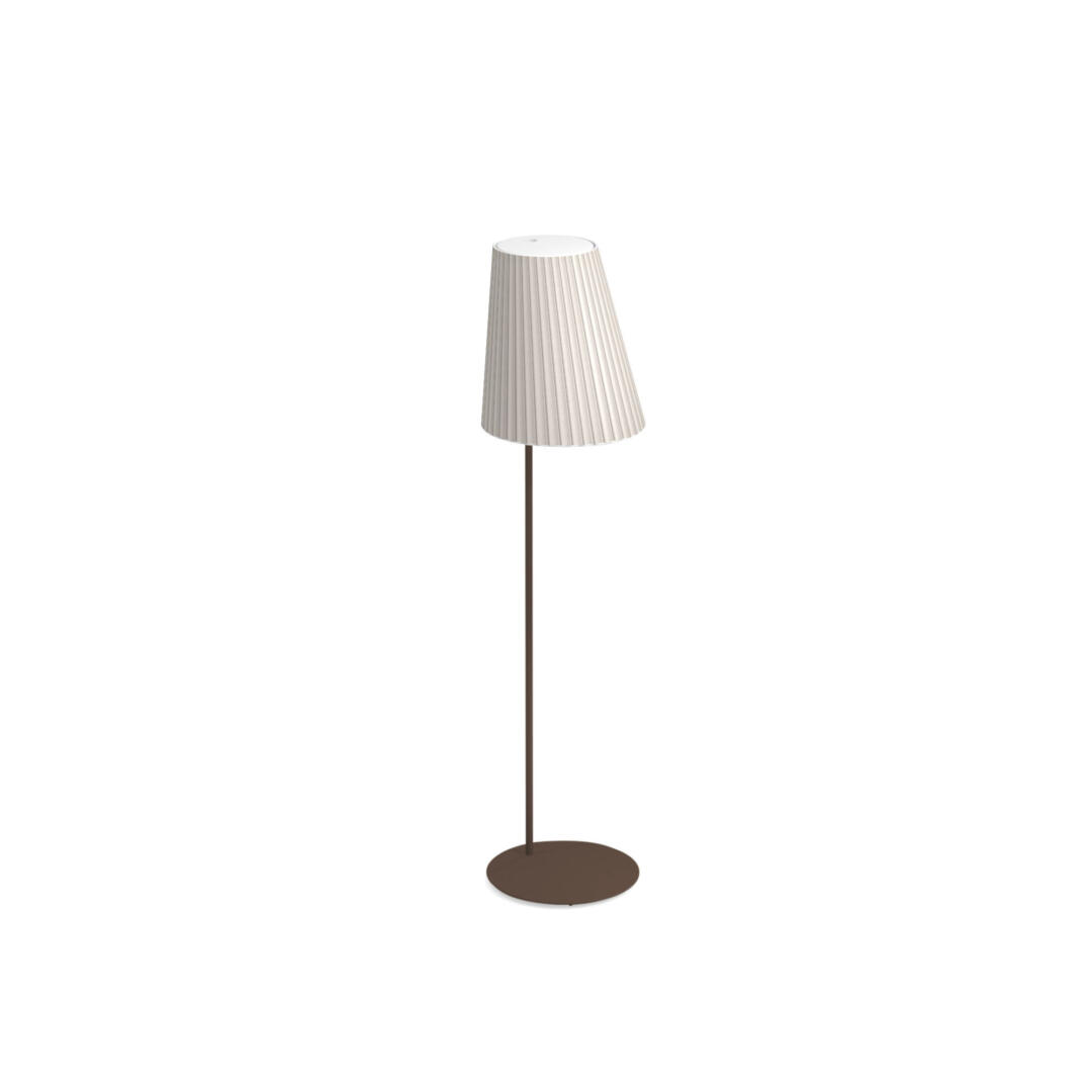 Cone wiederaufladbare Stehlampe Formen aus dem Fundus der Inneneinrichtung, die in die offenen Plätze migrieren: Die Lampenkollektion Cone lehnt sich an die eleganten Vintageprofile der Nachttischlampen der 50er Jahre an, die dank der geschickten Verwendung der Materialien und der Wahl der großzügigen Formen aktualisiert werden. Masse L/B/H: 43 x 43 x 170 cm