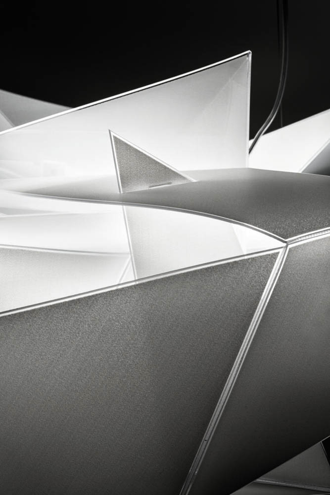 Cordoba ist natürlich von der gleichnamigen spanischen Stadt inspiriert, wo Architektur und Licht eine mythische Atmosphäre schaffen. Sie wurde von Daniel Liebeskind entworfen. Cordoba wird vollständig manuell von Hand in Italien hergestellt. Asymmetrien und Fragmente scheinbar ohne Zusammenhang bilden diese Pendelleuchte aus einer Vielzahl von Fragmenten zu einem Kunstwerk zusammen. In Kombination mit den besonders leuchtstarken LEDs im Inneren ergibt sich eine mystische Atmosphäre aus Formen und Licht. Cordoba ist ein aussergewöhnlicher Eyecatcher für den gehoben und repräsentativ eingerichteten Innenbereich. Dimmbar 1 – 10V.