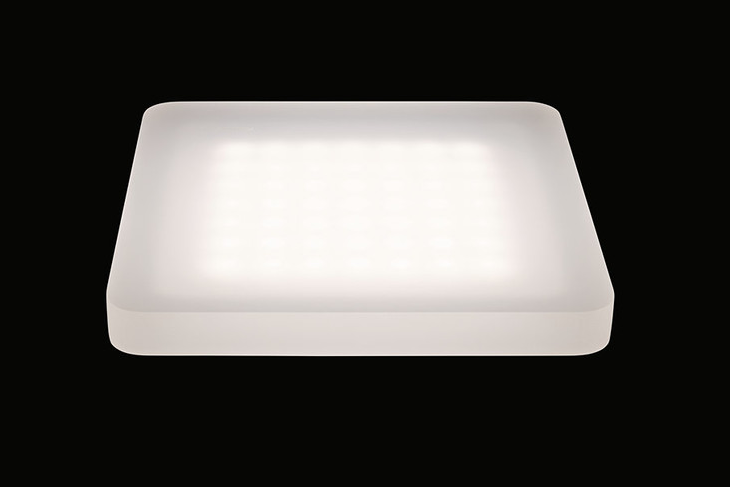 Kubische LED-Deckenleuchte, sehr homogener und weicher Lichtaustritt durch satinierte, geschlossene Diffusorfläche, breit abstrahlend, zusätzliche Deckenaufhellung sowie sehr gleichmäßige, nahezu raumhohe Wandaufhellung durch Seitenauskopplung von Sekundärlicht, Ausführung für 24 V Gleichspannung, externer Konverter erforderlich, auch ohne Befestigungsmaterial findet der Leuchtenkopf an magnetischen Metallflächen Halt (z.B. Kabeltrassen in Gebäuden). Die CUBIC 49 ist ebenfalls in der Variante AQUA erhältlich.