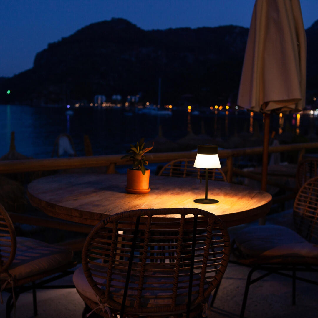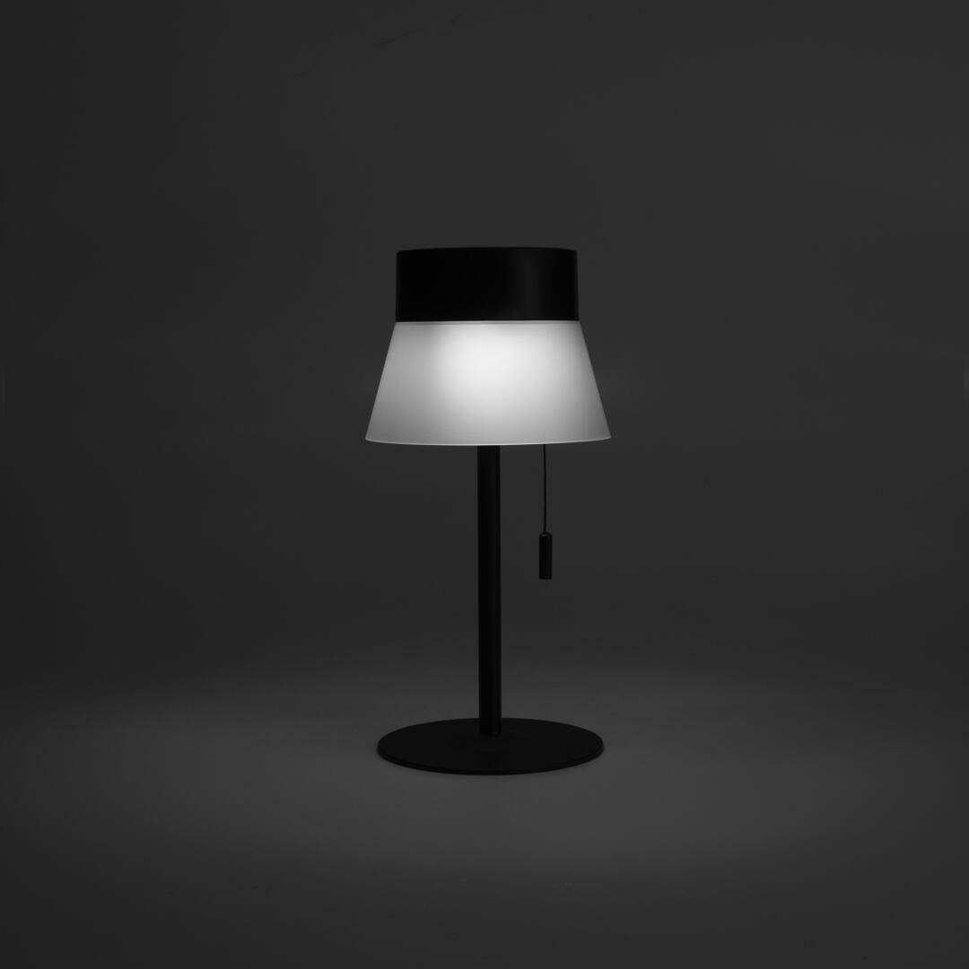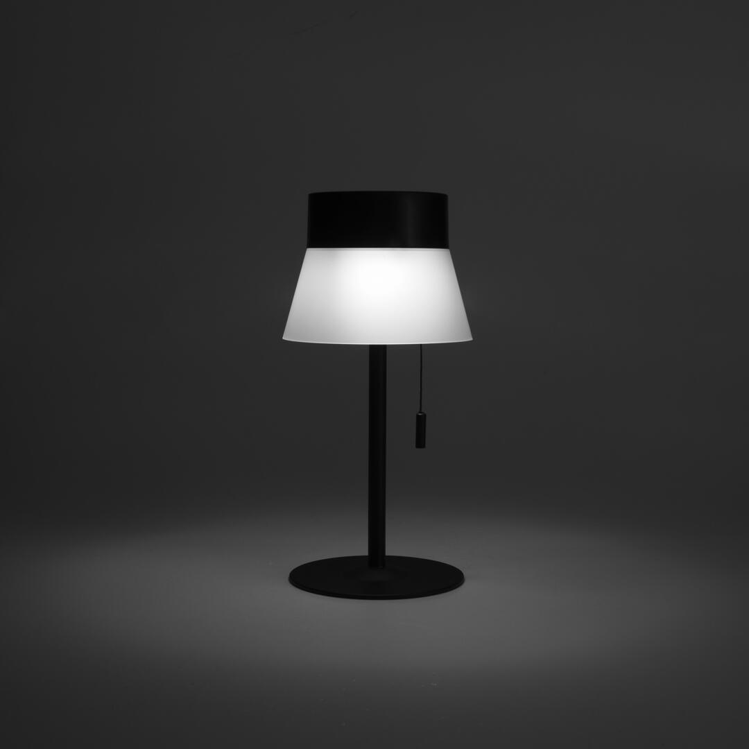 Die Deco Tischleuchte strahlt in deinem Wohnbereich den Minimalismus aus, egal ob drinnen, oder draussen auf dem Balkon oder im Garten. Mit ihren ansprechenden simplen Formen besteht die Deco Akku Tischlampe aus Polycarbonate und Stahl. Dank ihrer hochwertigen Verarbeitung ist der Gebrauch im Freien für die Lampe kein Problem. Sie ist dimmbar und ihr Akku hält je nach Dimmstufe bis zu 14 Stunden. Der Stahlschirm der Tischleuchte ist so designet worden, dass der Schirm einen Blendschutz mit sich bringt, während Kunststoffgestell der Leuchte die optimale Standfeste verleiht. Die schlichte LED-Leuchte ist ausschliesslich in schwarz erhältlich.