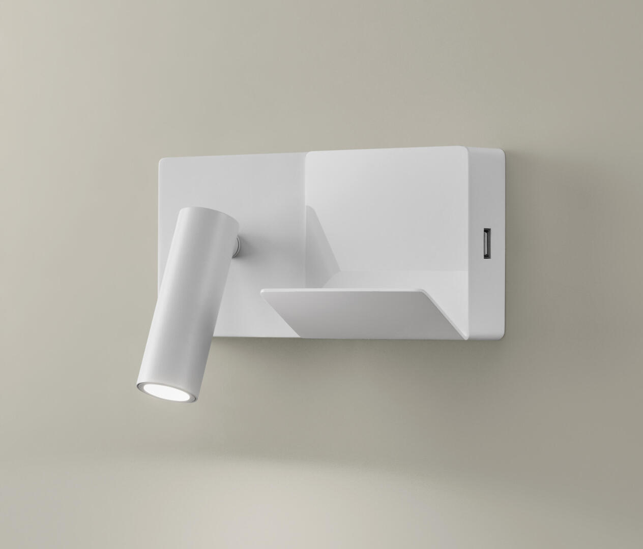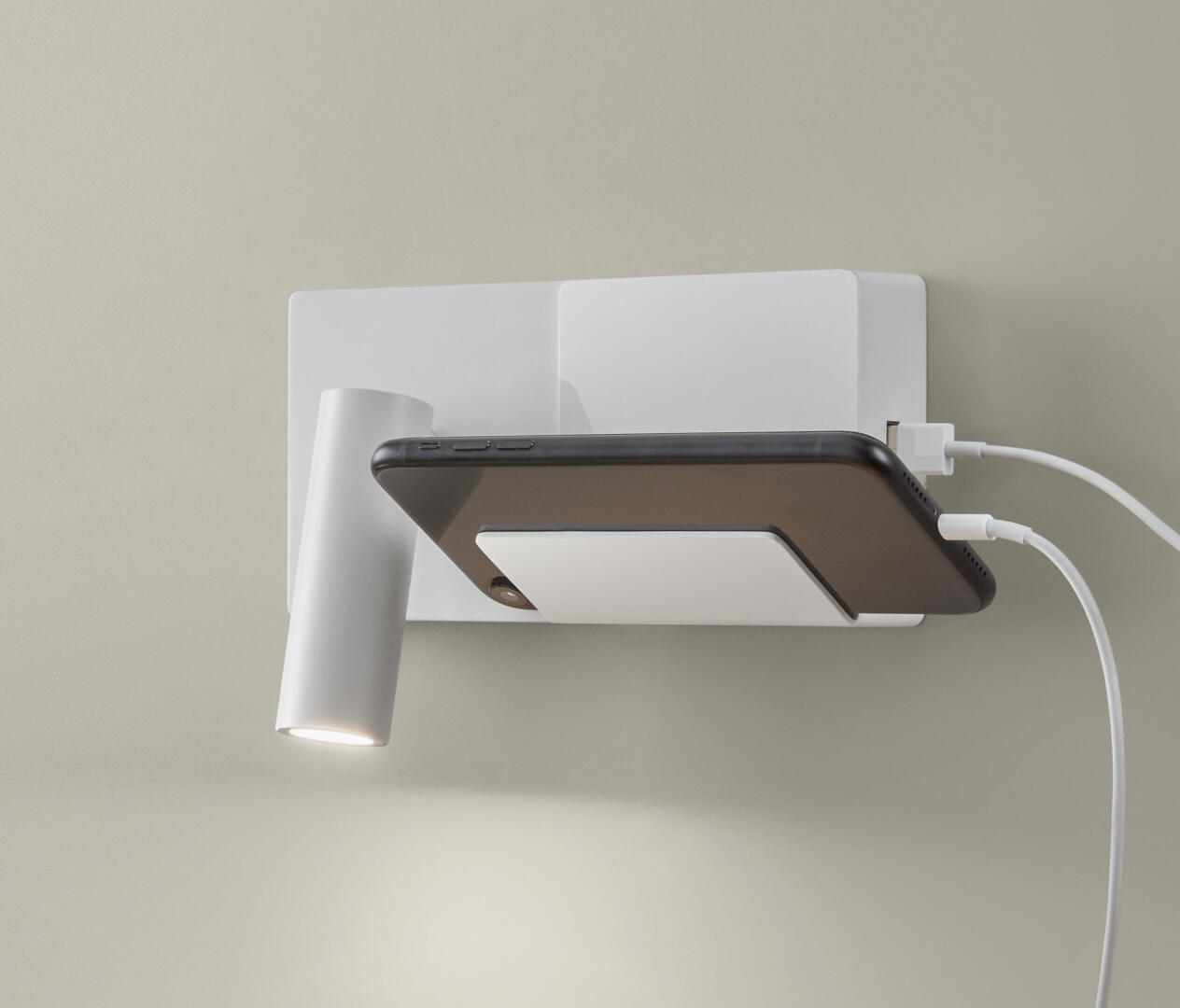 E-Lamp ist eine Kollektion mit einem rationalen, einfachen Design, das auf geometrischen Grundformen basiert. Diese multifunktionale Leuchte aus hochwertigem Aluminium bringt Harmonie und Integration in den Raum. Bestens geeignet als Nachtlicht neben dem Bett bietet dir E-Lamp nicht nur genügend Licht für deine Lektüre, sondern mit dem integrierten USB Anschluss auch noch die Möglichkeit dein Smartphone zu laden. E-Lamp ist in sechs verschiedenen Farbkombinationen erhältlich. Du kannst den Leuchtenkopf nach deinen Bedürfnissen ausrichten und die Leuchte quer oder hochkant montieren. E-Lamp bietet dir absolute Flexibilität.