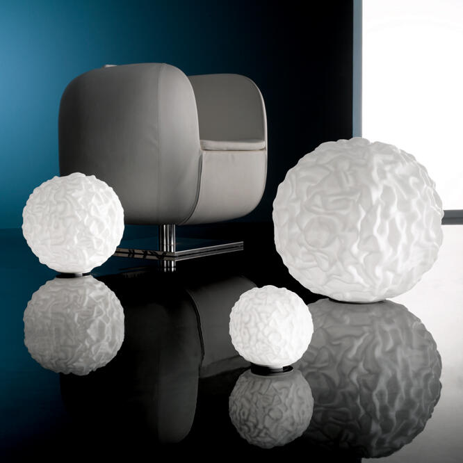 Die kugelförmige Tisch- oder Bodenleuchte vom Designer Marco Pagnoncelli ist eine aussergewöhnliche Leuchte. Der weisse Lampenschirm von Emisfero besteht aus mundgeblasenem, hochwertigem Triplexglas, welches nach der Fertigung mit Säure behandelt wird. Durch diesen Schritt im Herstellungsprozess, entsteht die einzigartige, charakteristische Struktur von Emisfero, die jede Leuchte zu einem Unikat macht. Ihre moderne, aber zudem auch klassische Erscheinung lässt Emisfero in vielen Bereichen einsetzen und zu einer Bereicherung für deinen Wohnbereich werden. Sie spendet diffuses Licht und je nach Leuchtmittel deiner Wahl kannst du die Lichtfarbe selbst bestimmen. Die Leuchte gibt es in drei verschiedenen Grössen: Durchmesser 25cm, 33cm und 48cm. Das passende Glühmittel legen wir dir kostenlos dazu.