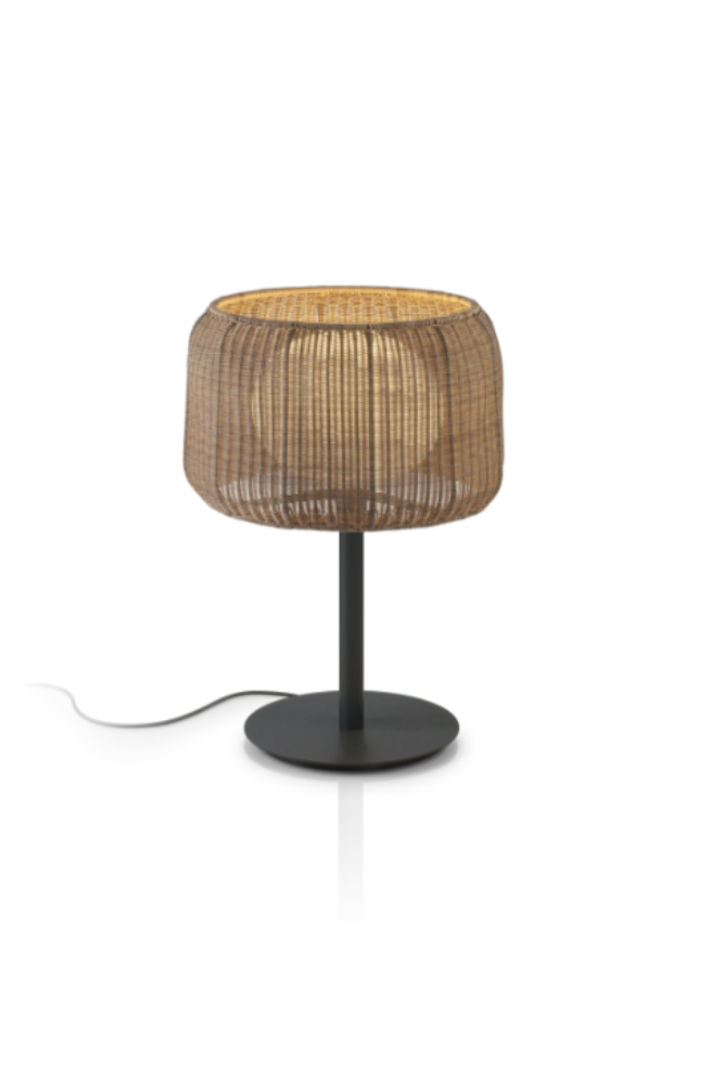 Die FORA M Tischleuchte vereint Eleganz und Stil, geprägt durch ihren handgefertigten Leuchtschirm aus witterungsbeständigem, synthetischem Korbgeflecht. Diese vielseitige Leuchte eignet sich sowohl für den Innen- als auch für den Aussenbereich und bietet eine angenehme, gleichmässige Lichtverteilung.
