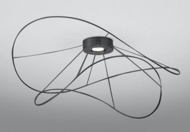 Linien, die schwelgerisch um einen Kern tanzen, in einem wechselnden Spiel aus reflektierten Formen und Licht. Die Schlangenartigen Form der Hoops ist ein dünner, wirbelnder Faden, dem die Augen folgen sollen.