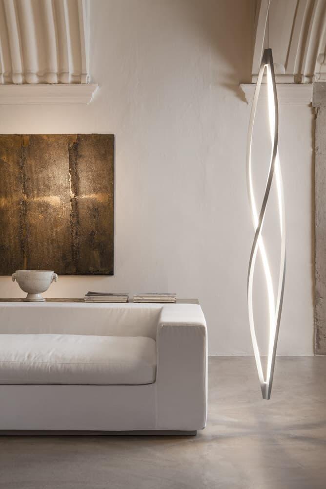 In The Wind vom Designer Arihiro Miyake ist ein eindrucksvolles und dynamisches Leuchtobjekt. Der Designer hat sich dabei an der Windkraft inspirieren lassen. Zur Herstellung dieser Leuchtenserie hat Nemo ein eigenes Twist-Off-Axis-Verfahren entwickelt um das fliessgepresste Aluminium in die gewünschte Form zu bringen. Von jedem Blickwinkel betrachtet ergibt In The Wind ein anderes, bewegtes Bild. Die vertikale Pendelleuchte strahlt warmes, diffuses Licht aus. Das Licht der Designerleuchte strahlt warm und diffus und spendet eine stimmungsvolle Atmosphäre. Die LEDs sind perfekt angeordnet, so dass In The Wind eine 360° Beleuchtung spendet.