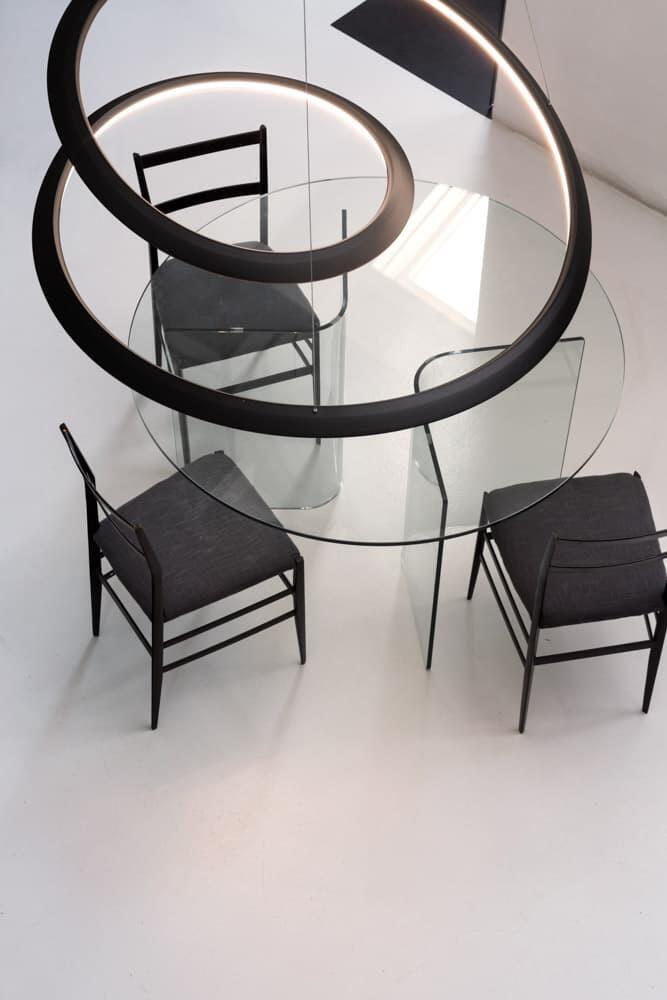 Diese Pendelleuchte ist vom Prinzip des Möbiusbandes inspiriert und besticht durch die Kombination von Leichtigkeit und Eleganz in einer simplen Geometrie. Die Struktur der Kepler ist eine lackierte Aluminium-Extrusion, deren durchgehende Linie durch ein vom Hersteller Nemo eigens entwickeltes dreidimensionales Bearbeitungsverfahren hergestellt wird. Die lichtspendenden LED Bänder sind perfekt verarbeitet und kaum zu sehen. Anmutig schwebt die Kepler im Raum und verleiht ihm eine opulente Eleganz. Die Option Downlight mit nach unten gerichteter Lichtquelle, spendet warmes direktes Licht auf die Fläche unter ihr.