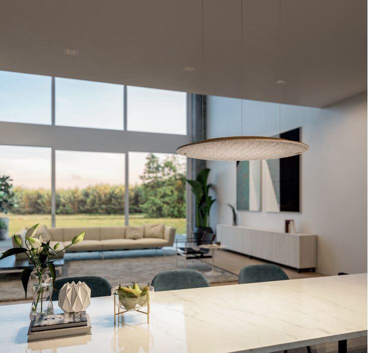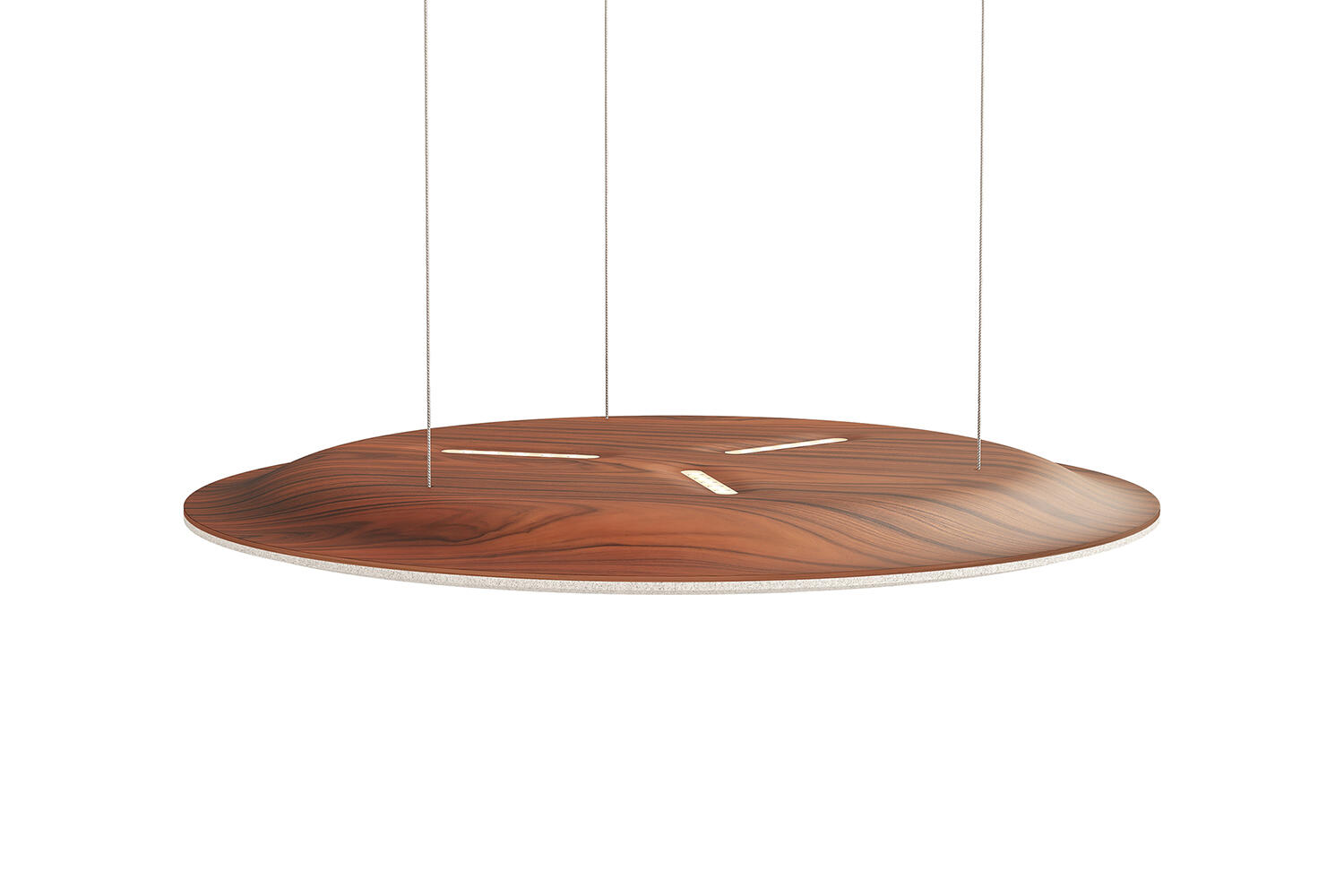 Das Lightingpad Lounge ist ein Novum. Es gibt fast nichts, dass diese Leuchte nicht kann. Die schallabsorbierende Akustikleuchte mit Indirektanteil hat ein in der Höhe variables Pendel und wird mit Gestensteuerung bedient. Die Lichtfarbe kannst du individuell von 2700K bis 4000K einstellen. Eine zeitlose Komposition aus Stil, Akustik und Licht. Die Oberseite der Leuchte besteht aus hochwertigem Formholz, ein akustisch wirksames geprägtes Vlies bildet das untere Pendant. Zusammen entsteht ein zurückhaltendes Statement aus der fliessenden, weichen Form, dem blendfreien Licht, der warmen Materialität des Holzes und der smarten Funktionalität. Die sehr bewusste Auswahl der natürlichen, wohnlichen Materialien Holz und Vlies, sowie die Verwendung modernster, effizienter LED-Systeme machen das Lightingpad Lounge zu einem nachhaltigen Produkt.