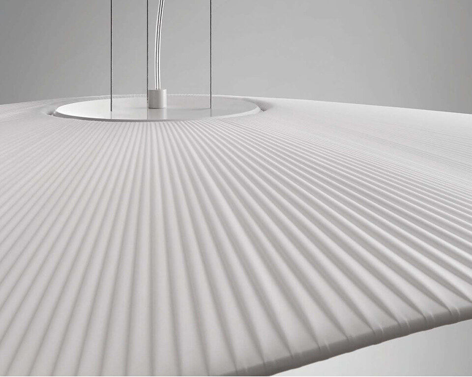 Pendelleuchte Mediterrània S/105.2 MEDITERRÀNIA ist ein wahrer Blickfang und eine Hommage an das Licht. Ihre Textilschirme mit geschwungenem Design erinnert an das Meer. Zwischen den Schirmen verbirgt sich ein fest integriertes LED-Leuchtmittel, dessen warmes Licht durch einen weissen Kunststoffdiffusor abgeblendet wird. Dadurch entstehen atmosphärische Lichtnuancen, die den weissen Stoff der Schirmen durchdringen. Dynamisch, modern und dennoch klassisch - so lässt sich diese Leuchte am besten beschreiben. MEDITERRÀNIA bereichert jede Umgebung mit schlichter Eleganz und einem Hauch mediterranem Lebensgefühl.