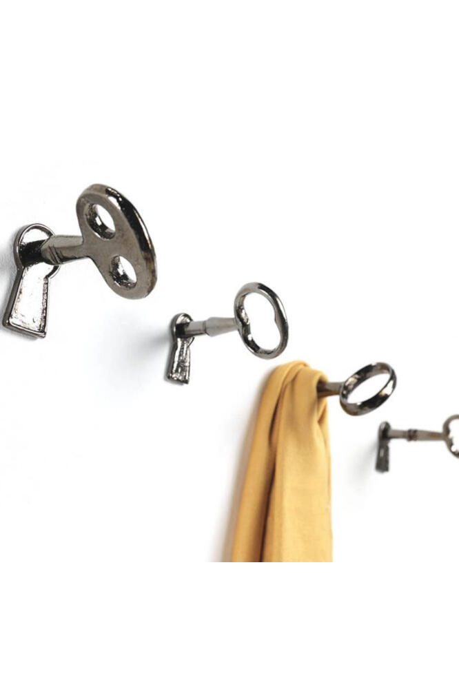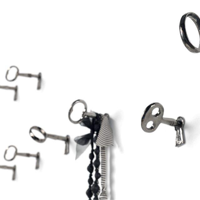 Memorie ist ein Set aus 4 Kleiderhaken in Form von Schlüsseln, die du frei an der Wand positionieren kannst. Die Schlüssel sind aus vernickeltem Messing gefertigt und sind ein echter Hingucker zum Beispiel im Eingangsbereich. Eine kreative Möglichkeit den Schal, Hut oder die Jacke aufzuhängen und eine originelle Wanddeko zugleich. Memorie wurde von Luca Somaini für Mogg entworfen. Die Kleiderhaken werden einfach mit einem Dübel und einer Schraube an der Wand befestigt.