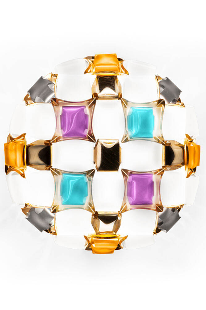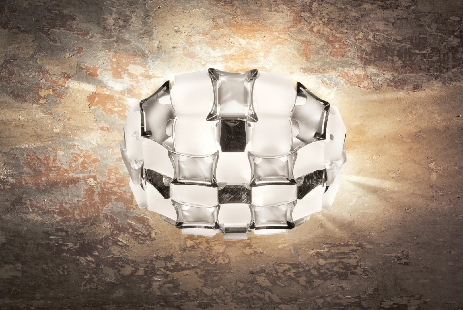 Die luxuriös wirkende Mida Wand- / Deckenleuchte ist inspiriert von der Welt der hochwertigen Schmuckstücke. Mida ist ein edler Eyecatcher für jeden Raum. Sie erzeugt ein schönes Licht, das sich indirekt an der Wand oder Decke projeziert und für eine schöne, glanzvolle Stimmung sorgt. Mida wird mit vier E27 Leuchtmitteln deiner Wahl ausgestattet um die wundervolle Strahlwirkung zu entfalten. Handgefertigt aus dem eigens von Slamp entwickelten Material, ist Mida zur einfachen Installation und zum Wechseln der Leuchtmitteln mit einem Magnetsystem ausgerüstet.
