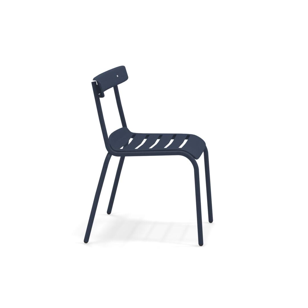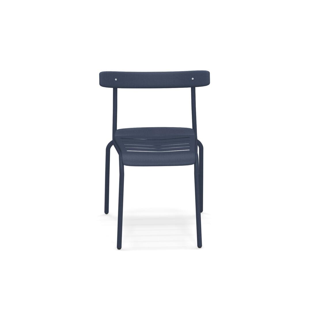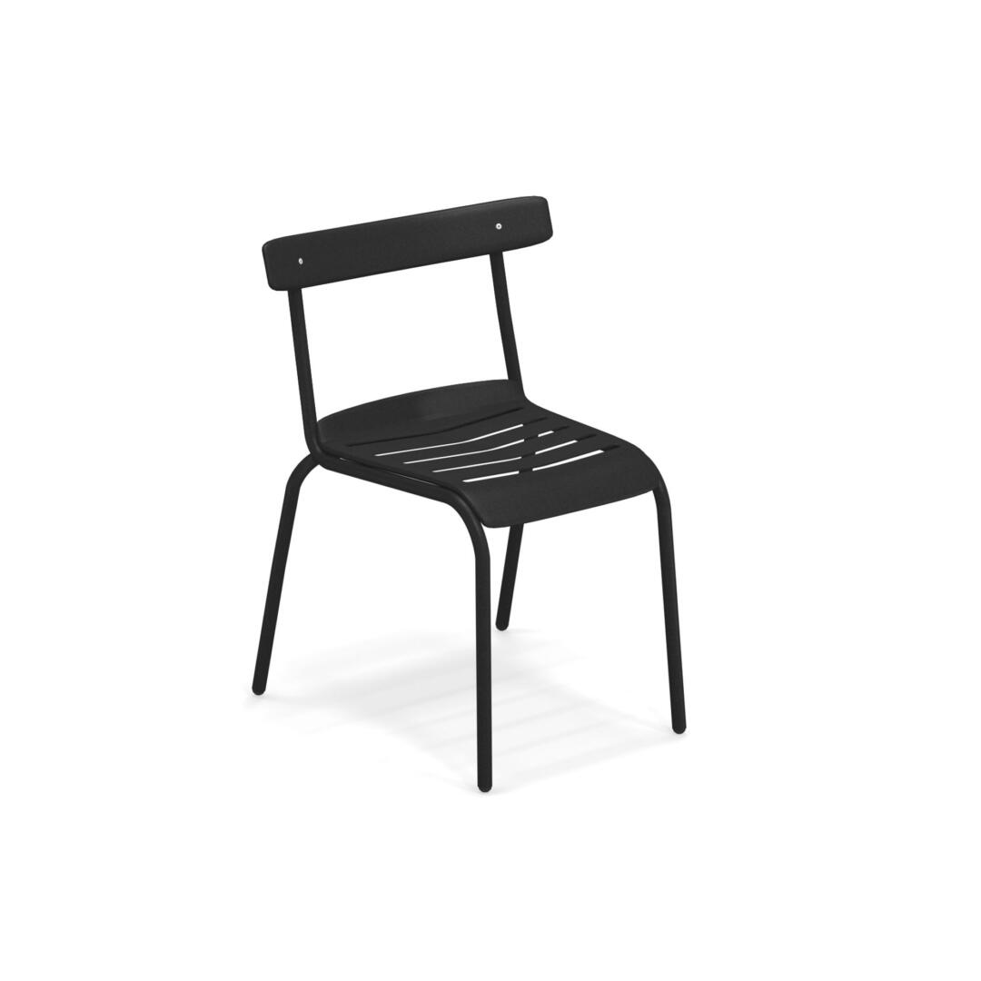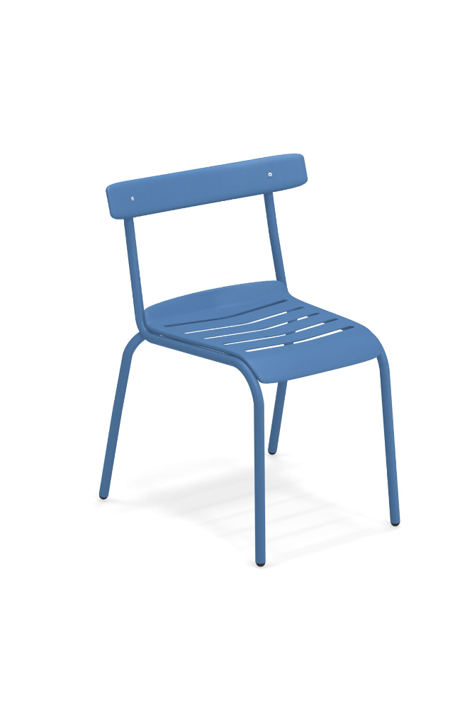 Die Kollektion Miky, mit Stuhl und Armstuhl, wurde von Bistrot Stühlen inspiriert, die auf moderne Art neu interpretiert wurden. Die Struktur besteht komplett aus Stahlrohren Fe360, während die Sitzfläche und die Rückenlehne, die sich durch ein besonderes Design auszeichnen, aus tiefgezogenem verzinktem Stahlblech bestehen. Verarbeitung Emu-Coat (Kataphorese + Lackierung).