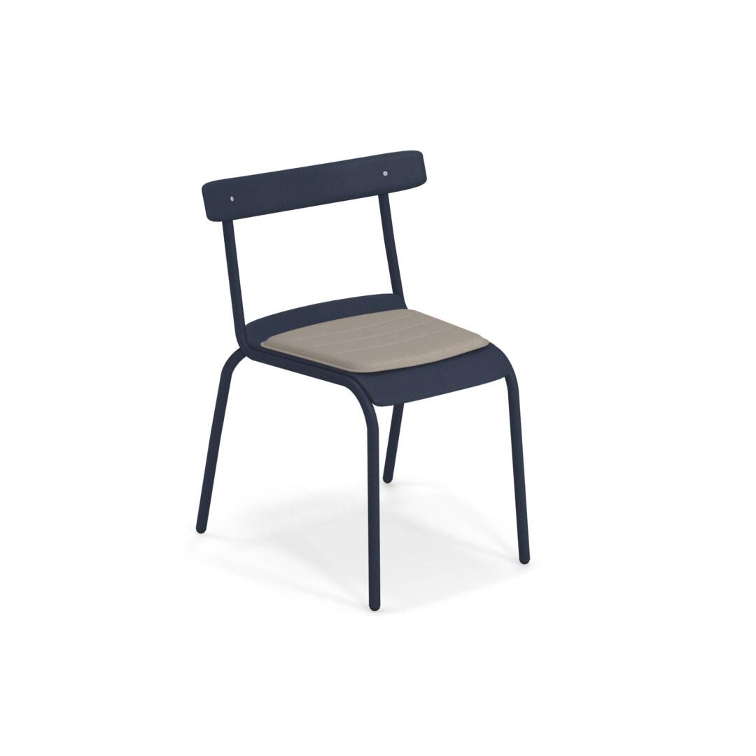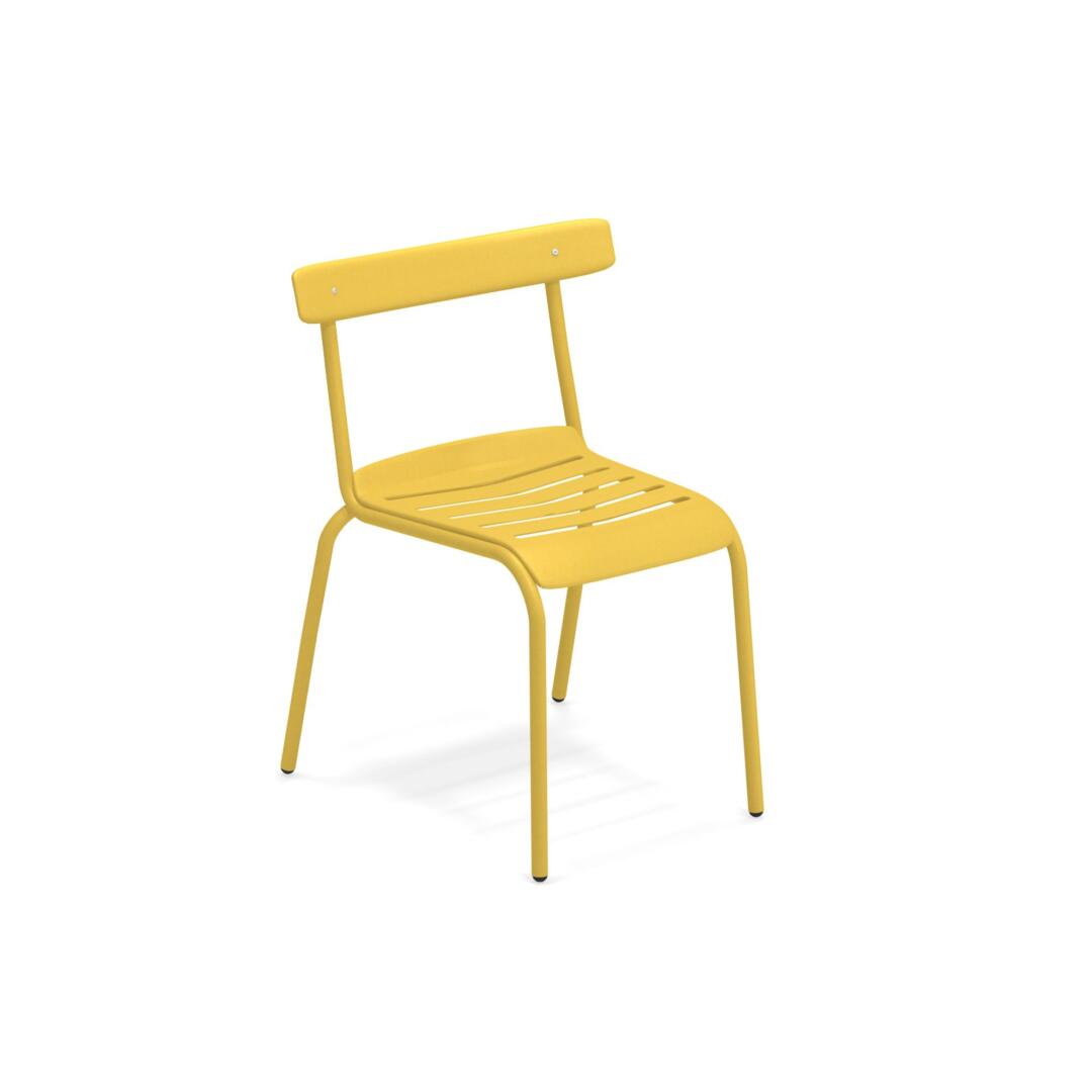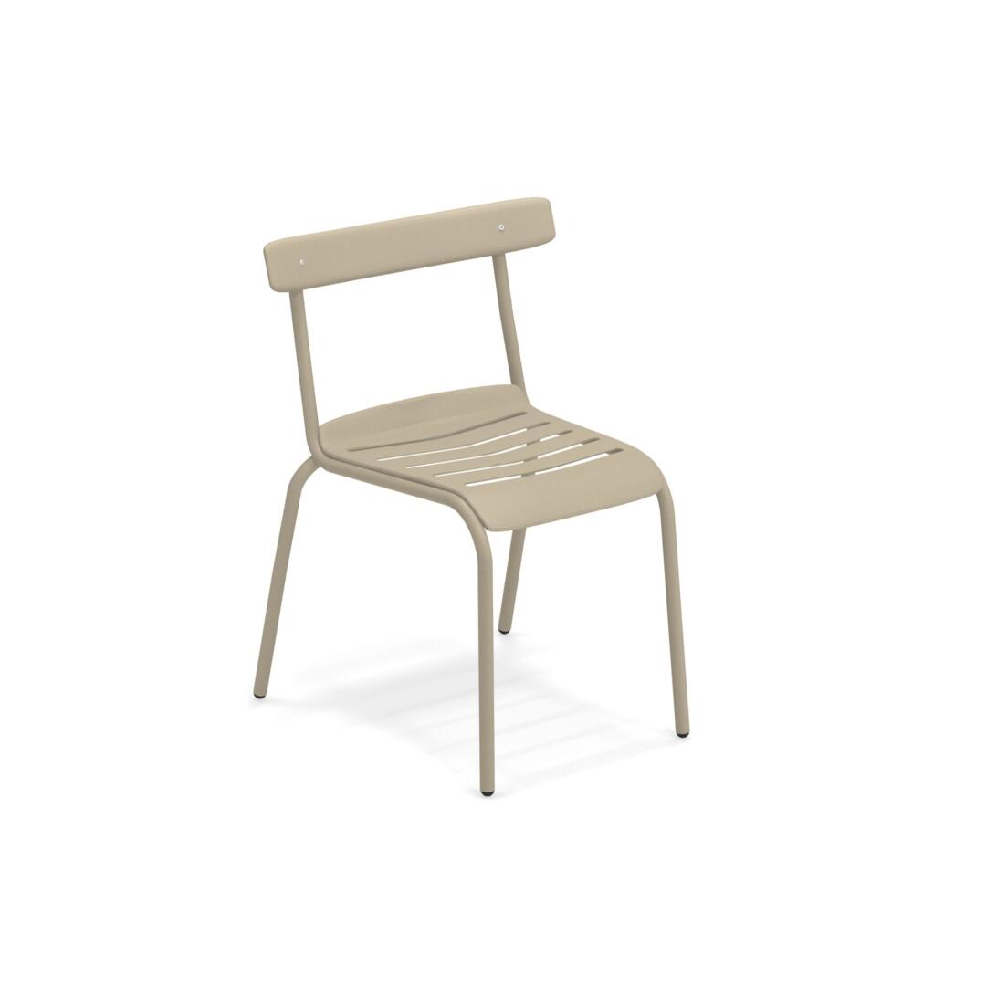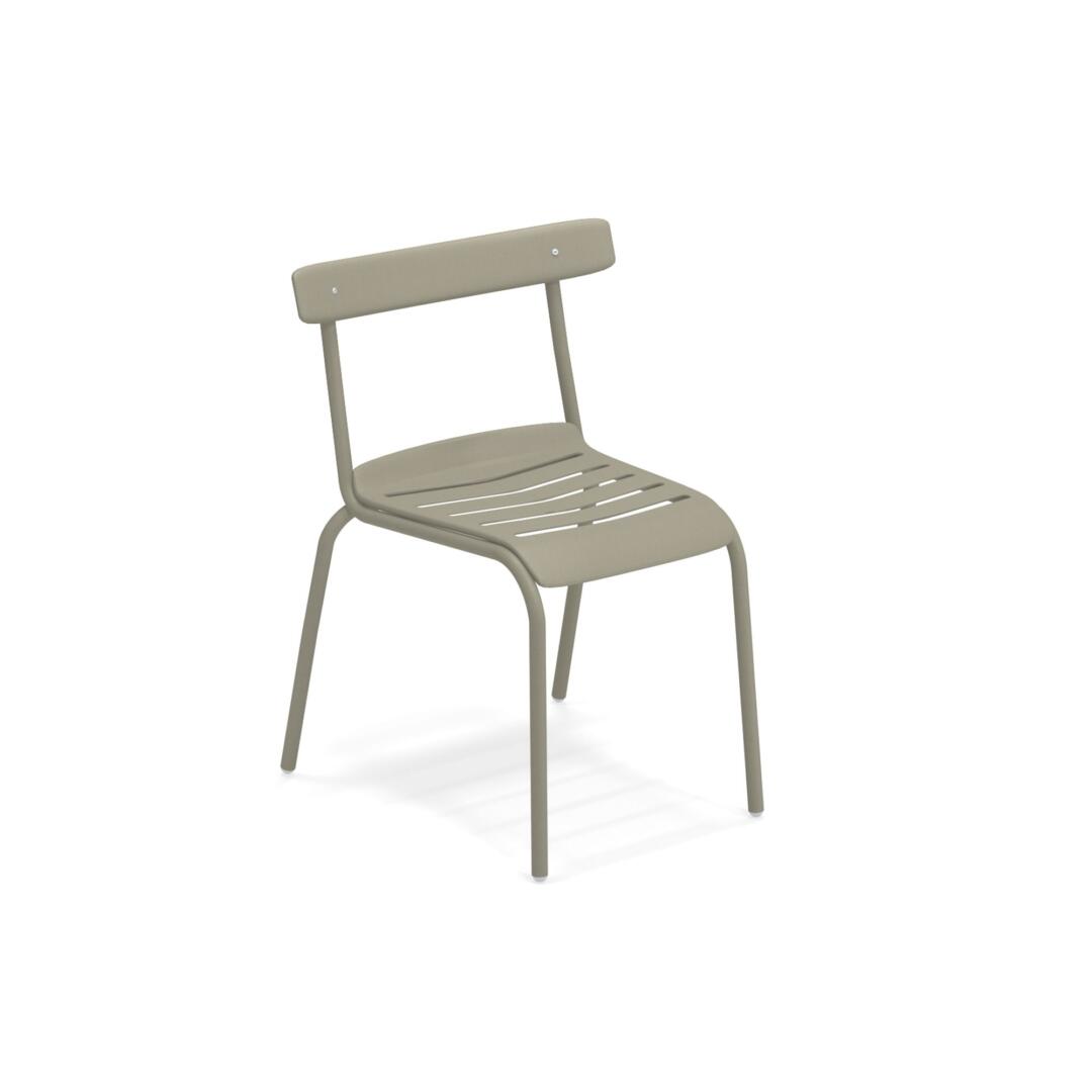 Die Kollektion Miky, mit Stuhl und Armstuhl, wurde von Bistrot Stühlen inspiriert, die auf moderne Art neu interpretiert wurden. Die Struktur besteht komplett aus Stahlrohren Fe360, während die Sitzfläche und die Rückenlehne, die sich durch ein besonderes Design auszeichnen, aus tiefgezogenem verzinktem Stahlblech bestehen. Verarbeitung Emu-Coat (Kataphorese + Lackierung).