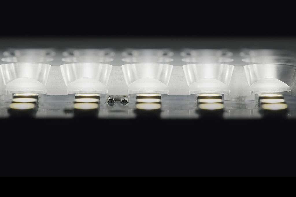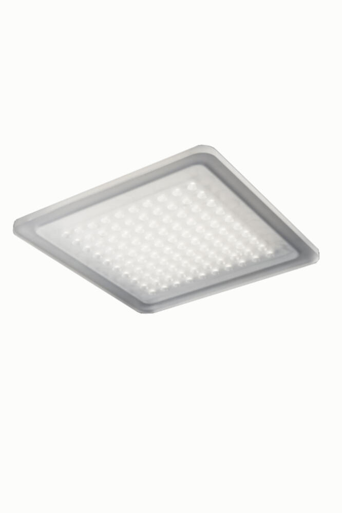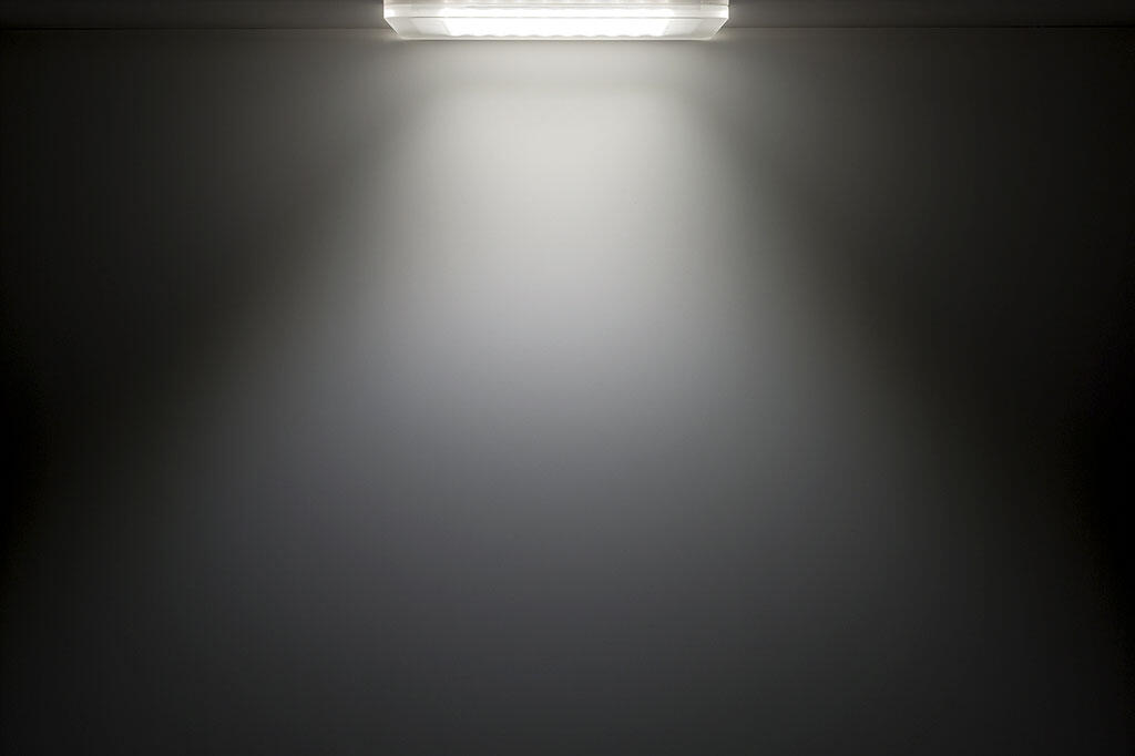 Extrem flache, nur 10 mm hohe LED-Deckenleuchte für Direktmontage oder alternativ mit Montagekonsole für Hohlraum erhältlich. Lichtaustritt ca. 98 % direktstrahlend, breit abstrahlend. Zusätzliche Deckenaufhellung sowie sehr gleichmäßige, nahezu raumhohe Wandaufhellung durch Sekundärlicht. Externer Nimbus-Konverter erforderlich. Der Konverter kann in die abgehängte Decke bzw. Decken-Verbindungsdose integriert werden.