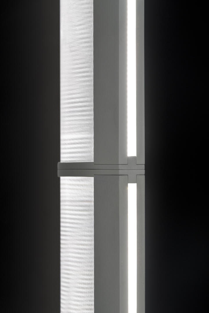 Die Plissee-Effekte, inspiriert von den Säulen der mittelalterlichen Klöster, und Crystal, die an eine Textur aus glitzernden Strasssteinen erinnern, machen die minimalistisch wirkende Lampe zu einer wahren Explosion der Kreativität.