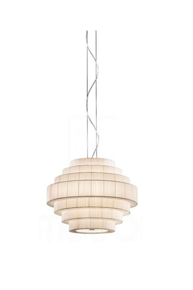 MOS 02 vereint stilvolle Eleganz mit dem Charme eines Lampions. Sie zaubert eine angenehme Lichtstimmung in Wohnräume und Essbereiche. Die runde Form des Schirms entsteht durch die Kombination mehrerer, unterschiedlich großer Ringe mit einem Bezug aus lichtdurchlässigen Streifenbändern. Die Streifenbänder sind in creme oder weiß erhältlich. Das Ergebnis ist nicht nur im Hinblick auf das Design der Leuchte, sondern auch auf die Lichtverteilung sehr außergewöhnlich und interessant. Die runde Deckenrosette ist aus mattem Nickel und das Anschlusskabel ist transparent. Die Abhängung ist höhenverstellbar. Das passende Leuchtmittel legen wir Dir kostenlos dazu.