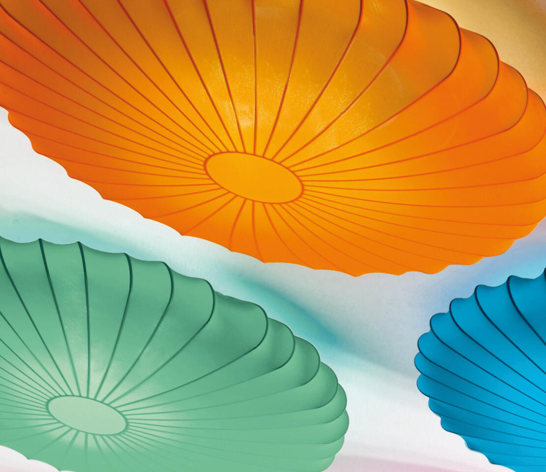 Kräftige Farben, geschmeidige Linien und fließende Stoffe lassen der Fantasie freien Lauf. Wand- und Deckenleuchten mit einem Metallrahmen und abnehmbarem, waschbarem, elastischem Stoffbezug. In verschiedenen Farben und Grössen erhältlich. Das passende Glühmittel legen wir dir kostenlos dazu.