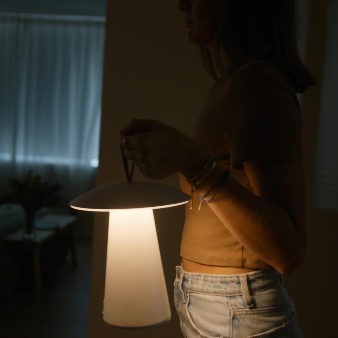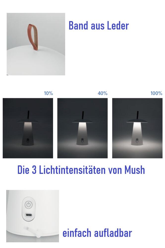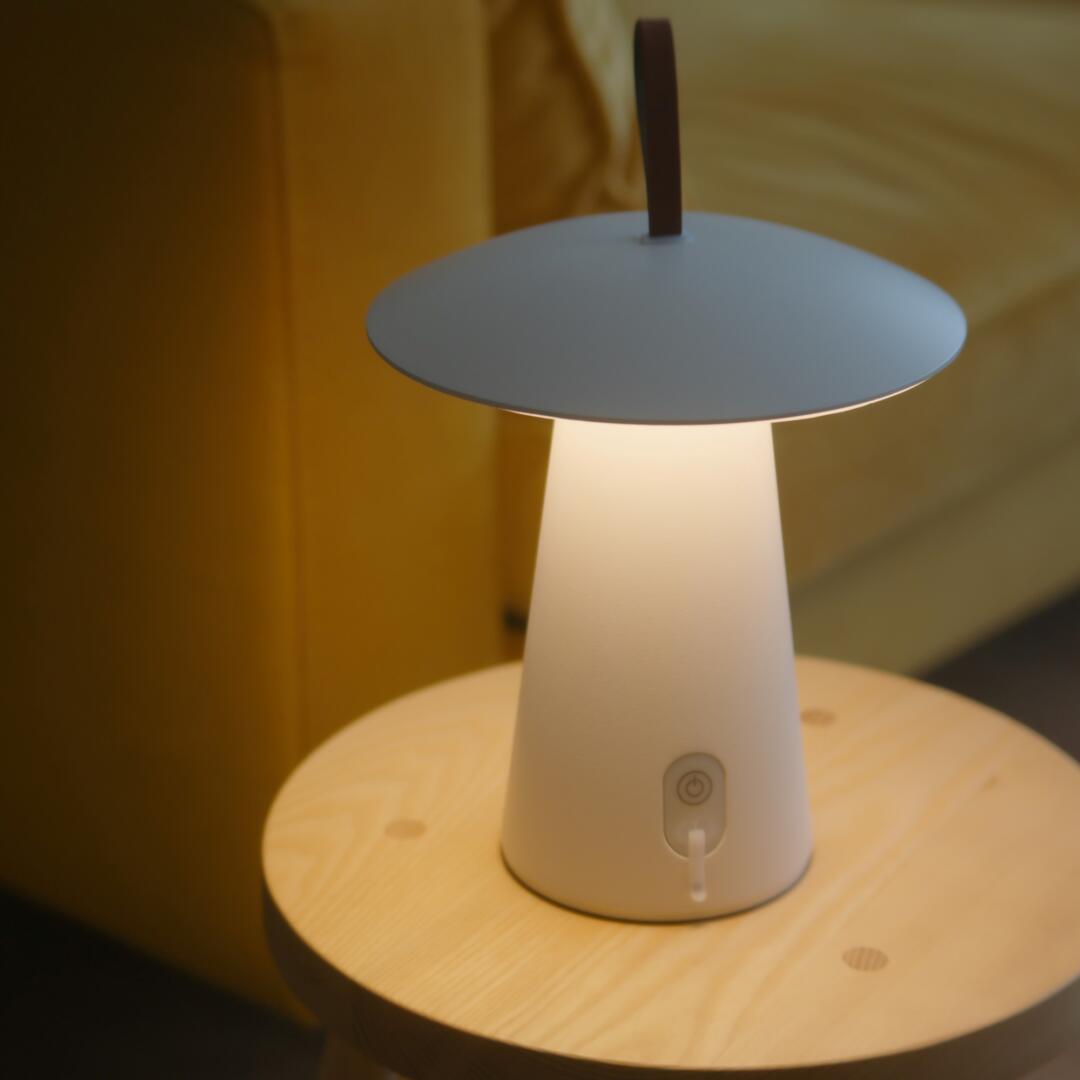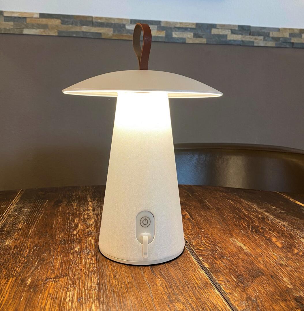 Die praktische Akku Tischleuchte, entdeckt von Lights24, die du dank ihrer Leder-Schlaufe und ihrem handlichen Format ganz einfach dort platzieren kannst, wo du willst. Die Leuchte aus Aluminium und Polycarbonat erinnert in ihrer Form an einen Pilz, was ihr auch den Namen gibt. Der Akku hält je nach gewählter Lichtstärke bis zu 80 Stunden. Er wird mit dem mitgelieferten Kabel aufgeladen. Mush ist perfekt für lange Abende auf der Terrasse oder als lichtgebende Tischdekoration. Die Lichtintensität kannst du in 3 Stufen dimmen.