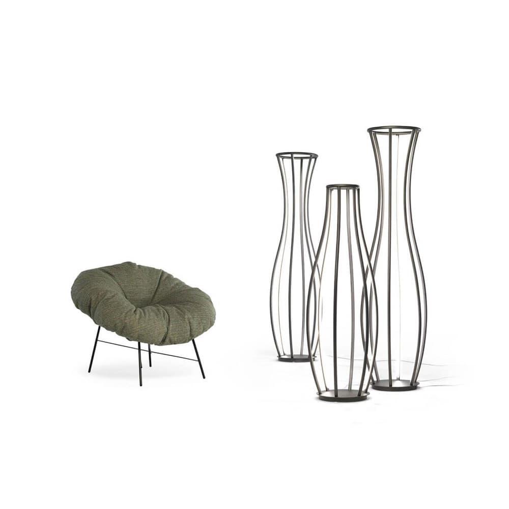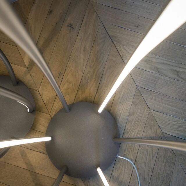 Penelope ist eine Stehleuchte aus gebogenem Metall, in schwarz lackiert. Die Stehleuchte ist mit LEDs ausgestattet und spendet wohnliches, warmes weisses Licht. Erhältlich in zwei verschiedenen Grössen, wurde Penelope aus der Synthese eines Zeichens geboren. Sie ist gewunden und harmonisch wie das wundervolle Profil einer Frau. Da sich im perfekten Profil von Penelope eine Lichtquelle befindet, kombiniert die Leuchte Form und Funktion gekonnt. Penelope wurde von Matteo Beraldi für Mogg designt. Die beiden Grössen lassen sich auch perfekt kombinieren.