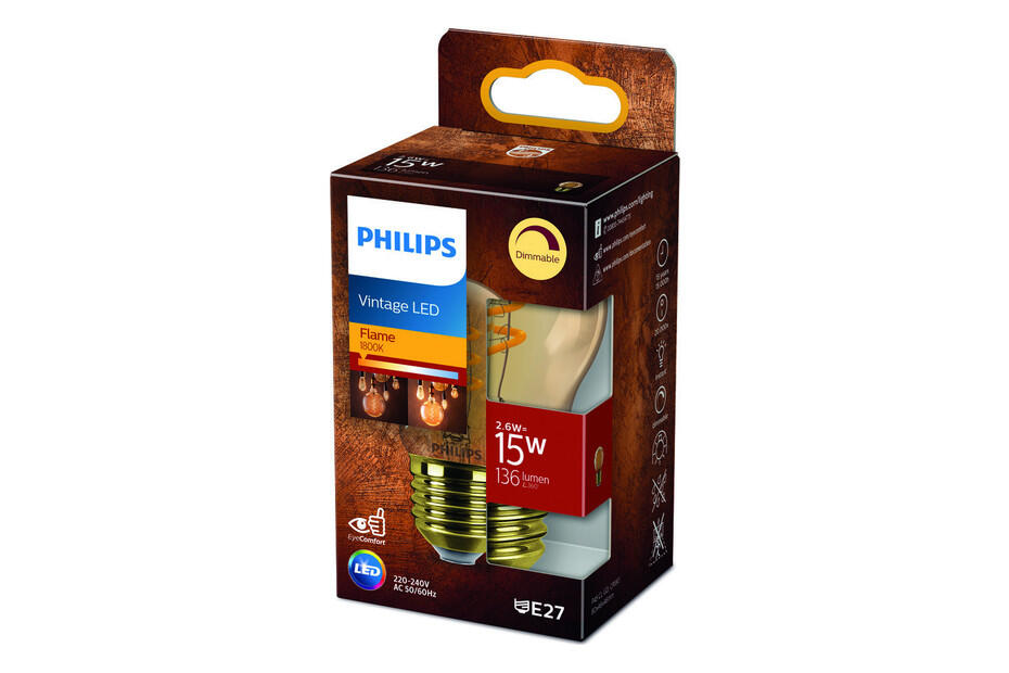 Leuchtmittel Vintage LED 3,5W E27 klassisch Vintage Glühmittel 3,5W von Philips - goldfarben Fassung E27 Dimmbar Dimensionen: Durchmesser 45mm Lebensdauer: 15'000 Std.