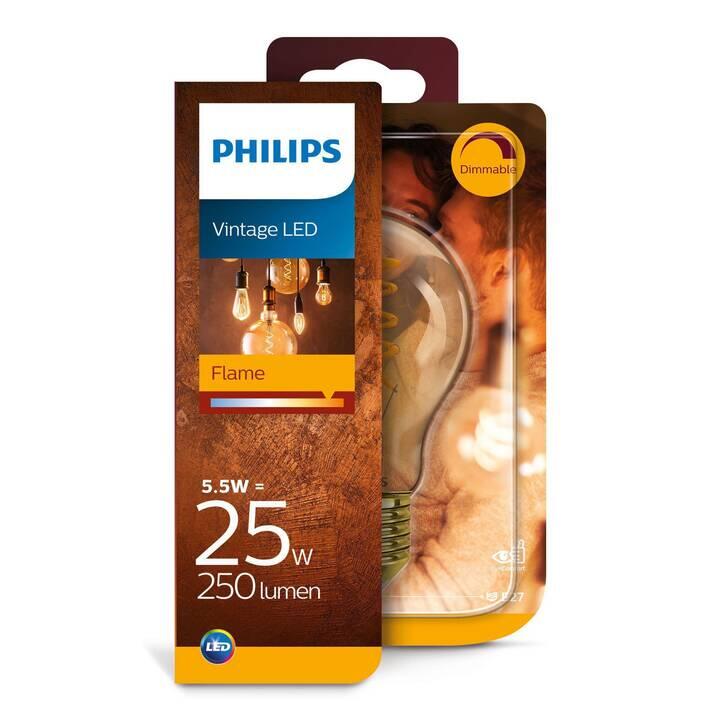 Leuchtmittel Vintage LED 5,5W E27 Flame/Klassisch Vintage Glühmittel 5,5W (entspricht 25W Standard) von Philips - goldfarben Fassung E27 -  warmweiss - 2000K Dimmbar Dimensionen: 104mm x 60mm Lebensdauer: 15'000 Std.