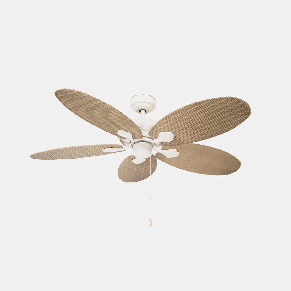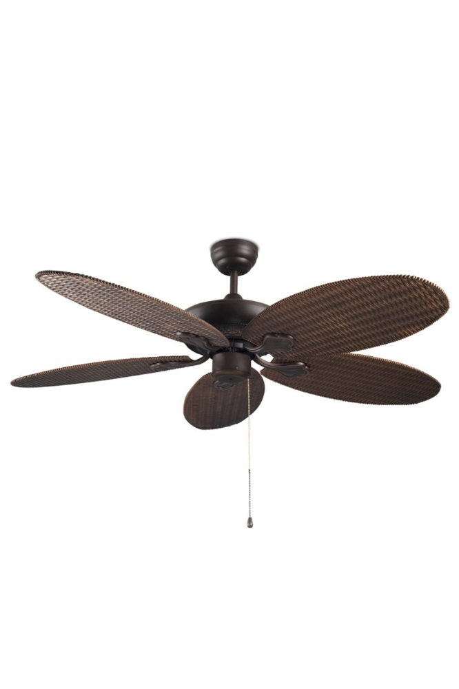 PHUKET ist ein schöner Ventilator. Er kommt vom Designstudio LEDS C4 aus Spanien sorgt im Sommer für ein angenehmes Klima. Aber auch im Winter ist der Ventilator sehr nützlich. Da warme Luft ein geringeres Gewicht als Kaltluft aufweist, neigt sie dazu, sich in dem oberen Bereich des Zimmers anzustauen. Im Rechtslauf statt im Linkslauf wie im Sommer läuft dann der Ventilator und leitet die an der Decke angestaute Luft nach unten und die Wärme verteilt sich gleichmäßig im gesamten Raum. Der geräuscharme Deckenventilator ist aus Stahl gefertigt. Die fünf Rotorblätter sind aus ABS- Kunststoff in Rattan-Optik hergestellt. Der Ventilator kann per Seilzugschalter eingestellt werden. Optional kann der Ventilator mit dem Beleuchtungsset auch den Raum beleuchten.
