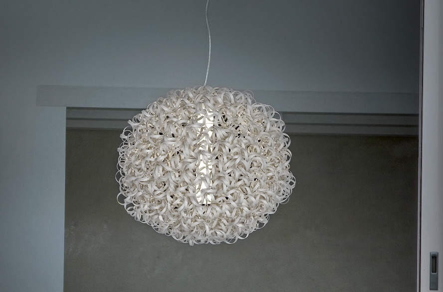 Salsola S SALSOLA S ist eine besondere wie schöne Pendelleuchte für den Innenbereich. Sie wurde von Marco Pagnoncelli für den italienischen Hersteller Icone entworfen. Diese moderne Pendellampe aus Italien ist die perfekte Balance zwischen Design und Natur in jeder Umgebung. Icone liefert mit seiner Leuchtenserie Salsola, was Salzkräuter bedeutet, ein besonders reizvolles Design ab. Es handelt sich um eine runde Struktur aus wellenartig verwobenen und lackierten Aluminiumbändern. Sie besteht nur aus Aluminium mit Oberflächen in Weiß oder Altbraun.