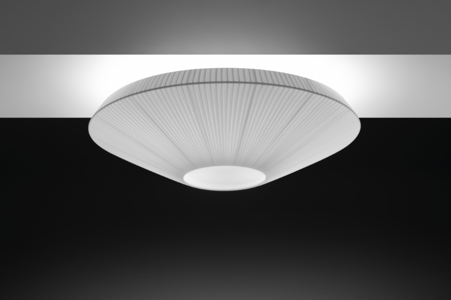 SIAM 120 ist eine außergewöhnliche und voluminöse Deckenleuchte. Den Lampenschirm kannst Du in Weiß oder Cremefarben bestellen. Die Designerleuchte bindet das Licht in ihrem Stoff und lässt so eine helle und freundliche Beleuchtung rund im Raum erscheinen. Das Licht gelangt mit Hilfe eines Diffusors direkt nach unten. Gleichzeitig verbreitet sich das Licht zu den Seiten. Das macht sie zum Mittelpunkt jeder Einrichtung. SIAM ist ein echter Blickfang. Das passende Leuchtmittel legen wir Dir kostenlos dazu. Entdecke weitere Modelle dieser Leuchtenfamilie in unserem Onlineshop!