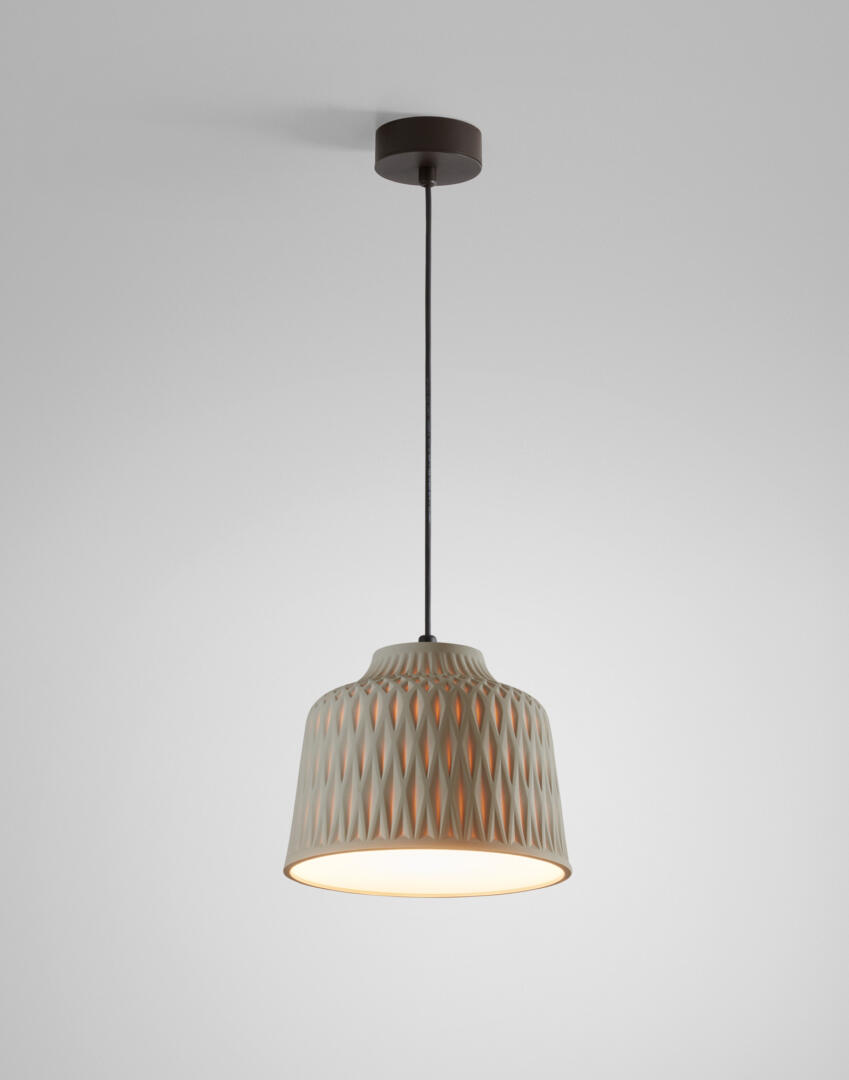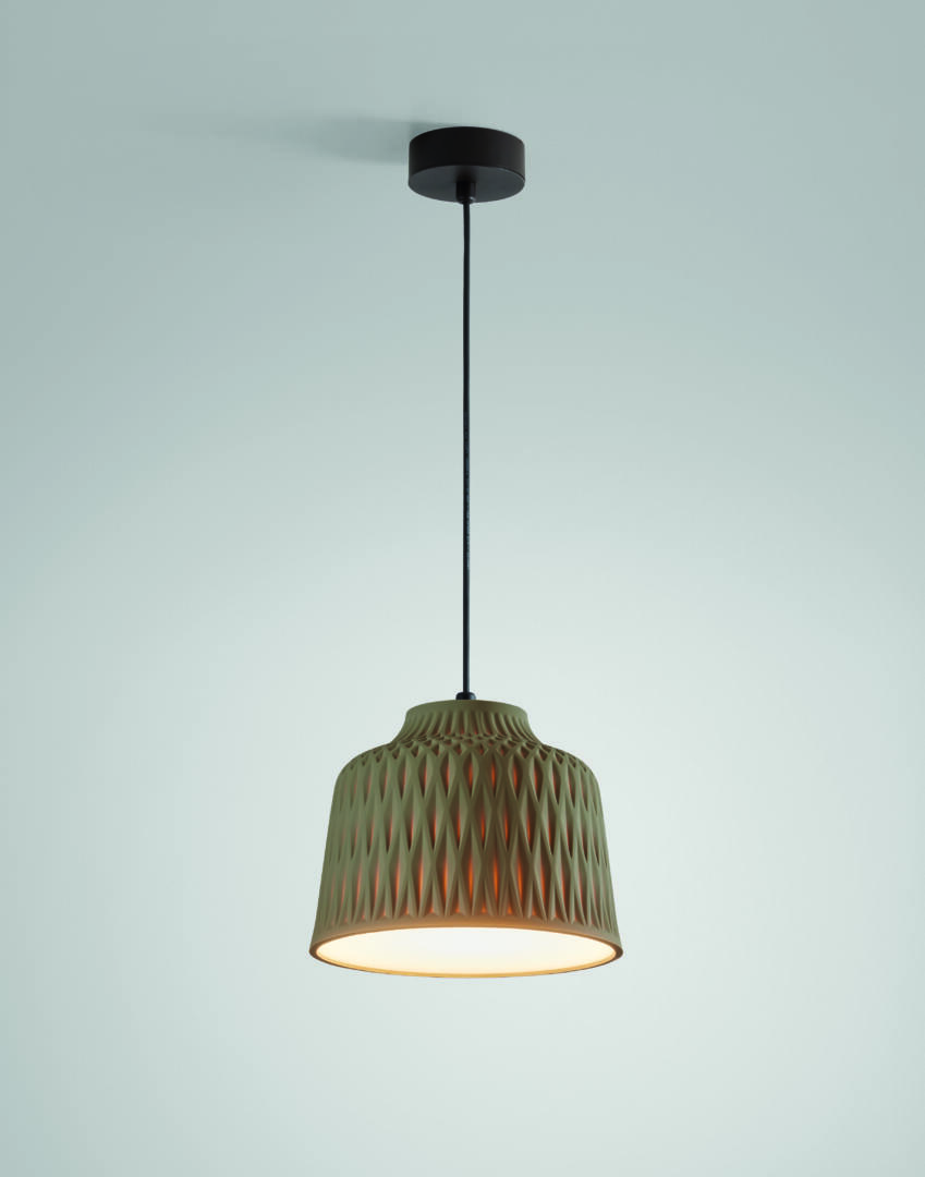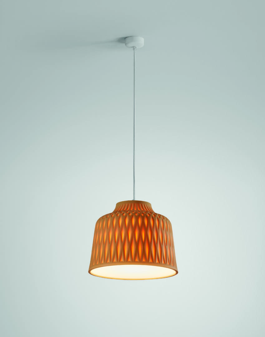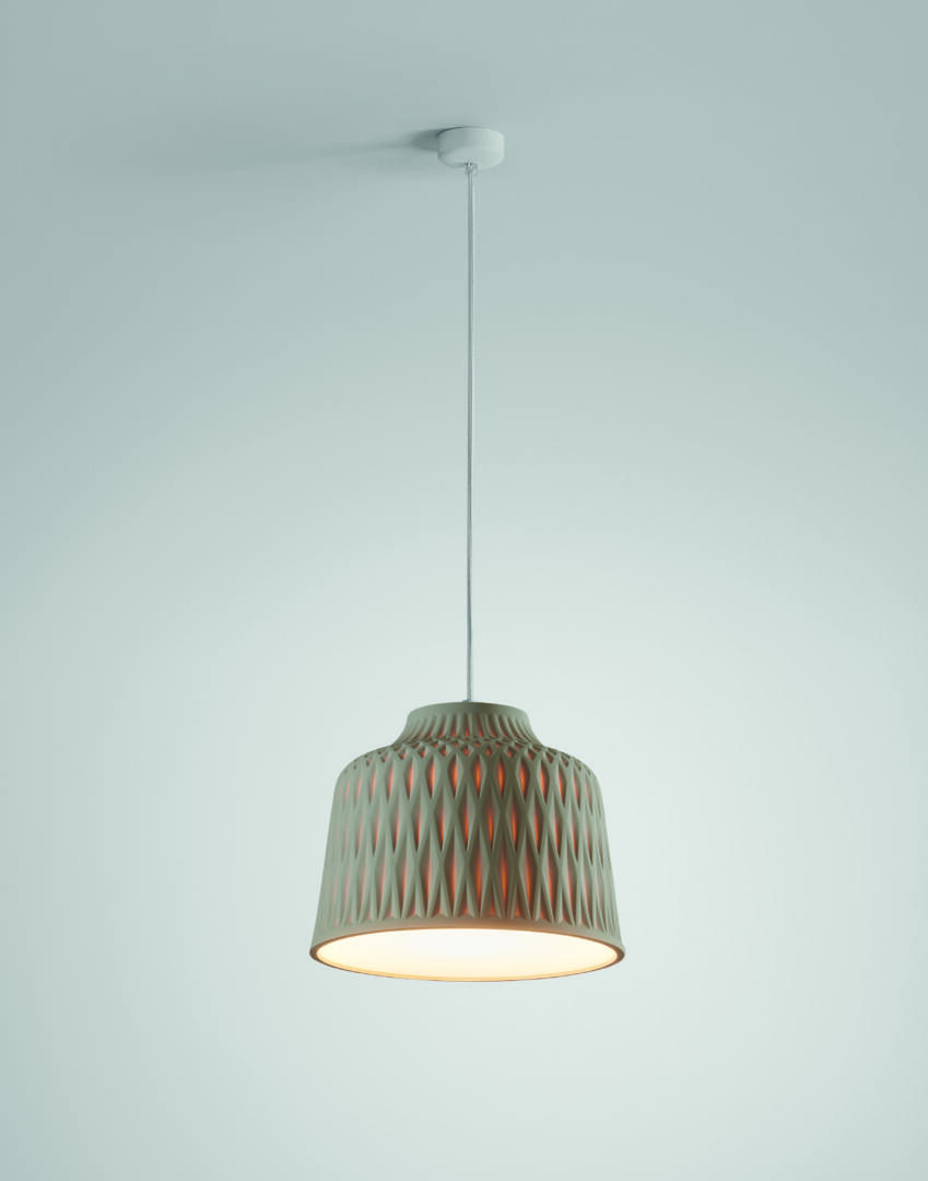 Die Struktur auf ihrem Schirm aus Silikon erinnert an klassische Weingläser aus böhmischem Glas.