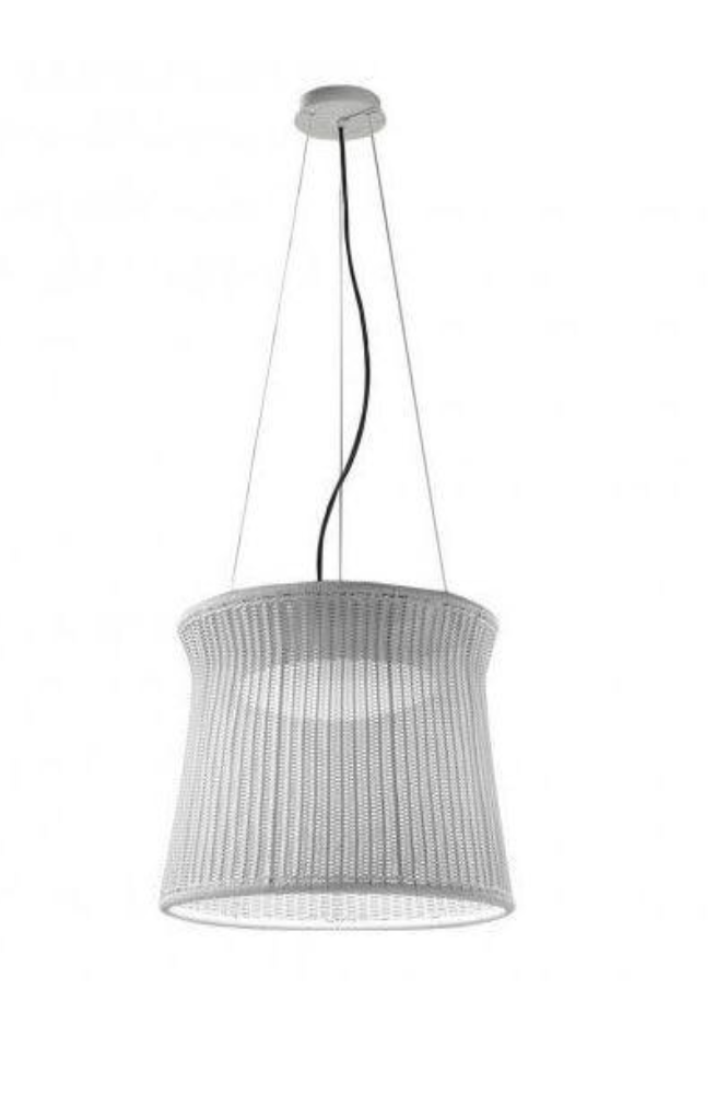 Syra 60 Outdoor SYRA 60 Outdoor ist eine schicke und elegante Pendelleuchte die für den Außenbereich konzipiert wurde. Sie wurde im Jahr 2014 von den Designern Alex Fernandez Camps und Gonzalo Mila für den spanischen Hersteller Bover entworfen. Der Lampenschirm ist aus Polyethylen Faser gefertigt und wird mit drei Stahlseilen mit einem runden Baldachin an der Decke befestigt. Sie ist wahlweise in weiß oder schokoladenbraun gefärbt. Für die Beleuchtung sorgen LED-Leuchtmittel, die ihr Licht durch einen Diffusor aus Glas direkt nach unten abgeben. Gleichzeitig dringt das Licht auch durch die Lücken zu den Seiten. Dadurch entsteht eine Beleuchtung, die ein Tisch hervorragend beleuchtet und ein atmosphärisches Licht entstehen lässt.