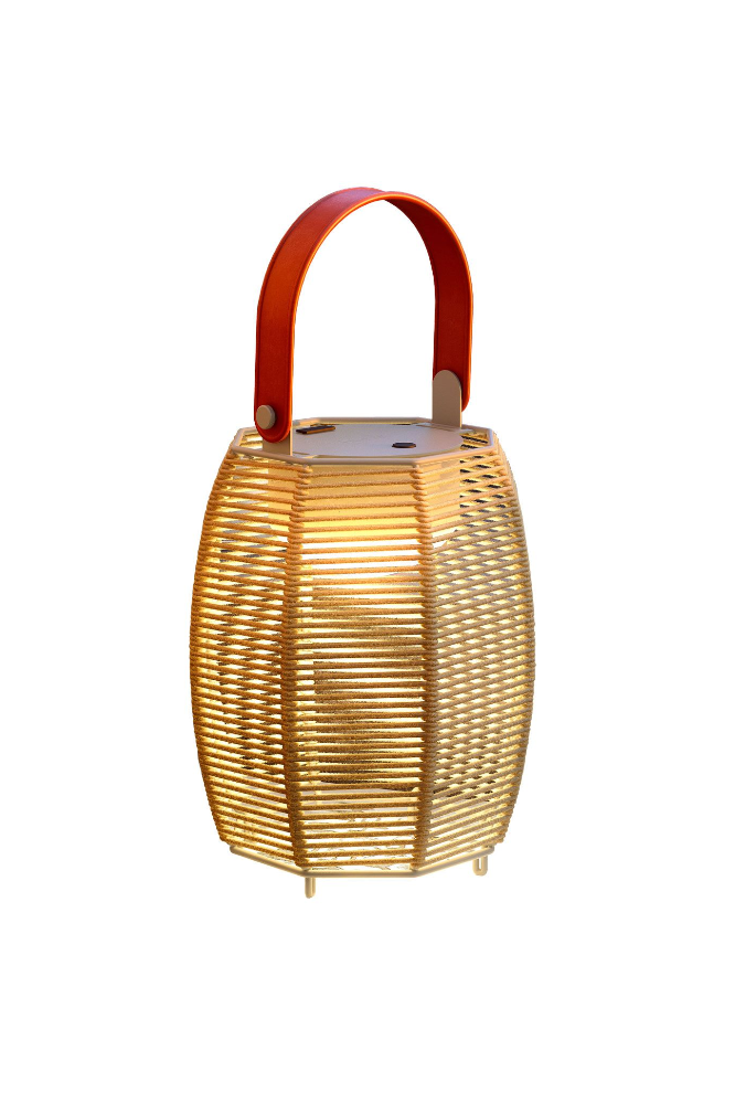 TANIT M/29/R ist eine mediterrane Tischleuchte, die ganz einfach über USB geladen und mobil betrieben werden kann. Die Tischlampe kann je nach Dimmstufe zwischen 5 und 20 Stunden ohne Stromquelle auskommen. Dank der Energieeffizienz der modernen LED Technologie ist die Lichterfahrung längst nicht mehr an die Stromquelle gebunden. Somit ist TANIT ein optimaler Begleiter im Wohnbereich oder Abends auf dem Balkon, der Terrasse oder im Garten. Der Schirm besteht aus von Hand gewebten Baumwollfäden und lässt das Licht durch die kleinen Schlitze sanft durchscheinen, was eine angenehme und gemütliche und stimmungsvolle Atmosphäre zaubert. Der Griff zum einfachen Tragen oder Aufhängen der Leuchte ist aus Silikon gefertigt.