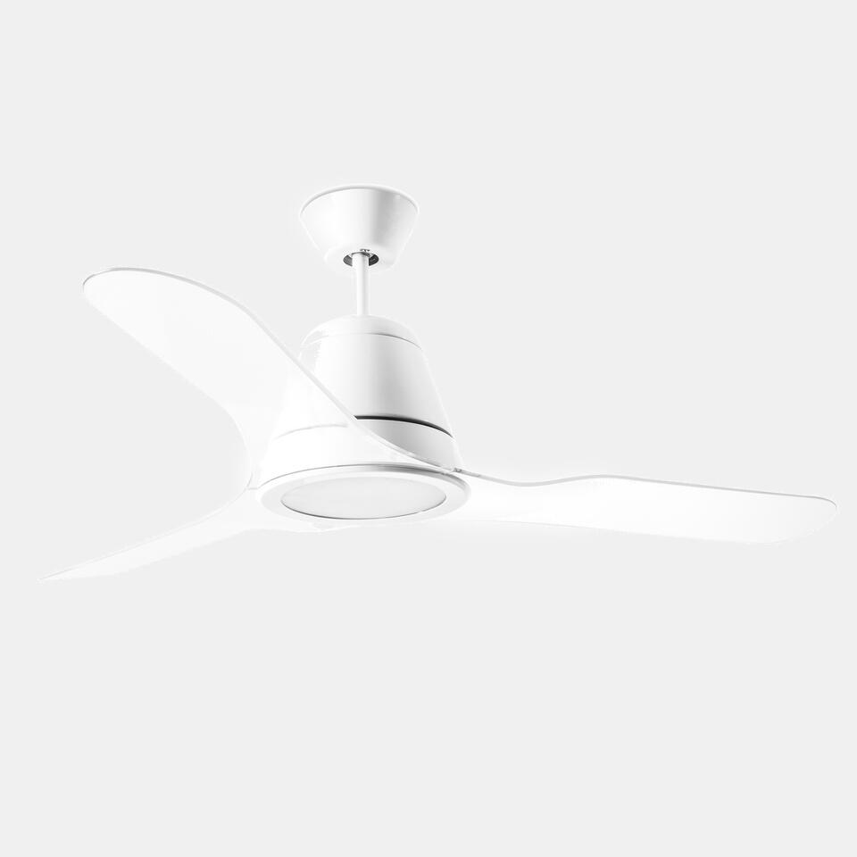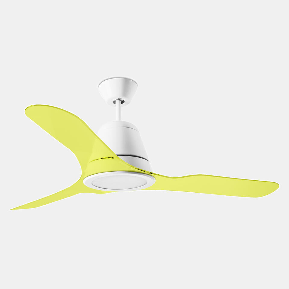 TIGA ist in aktuellem Look gestaltet und sorgt in jedem modern eingerichteten Raum für eine frische Brise. Dank der durchscheinenden Acrylflügel wirkt er ausgeschaltet fast wie eine gewöhnliche Deckenleuchte, deren besonderes Einsatzgebiet erst bei genauerem Hinsehen entdeckt wird. TIGA ist mit Sommer- und Winterfunktion ausgestattet, dass der Deckenventilator im Sommer für eine willkommene Abkühlung sorgt und im Winter durch gleichmäßige Luftverteilung eine Ersparnis bei den Heizkosten ermöglicht. 91 warmweiße LEDs sorgen darüber hinaus für stimmungsvolles Licht, das sich durch die Bewegung der Rotoren zu einem Lichtbündel vereint.