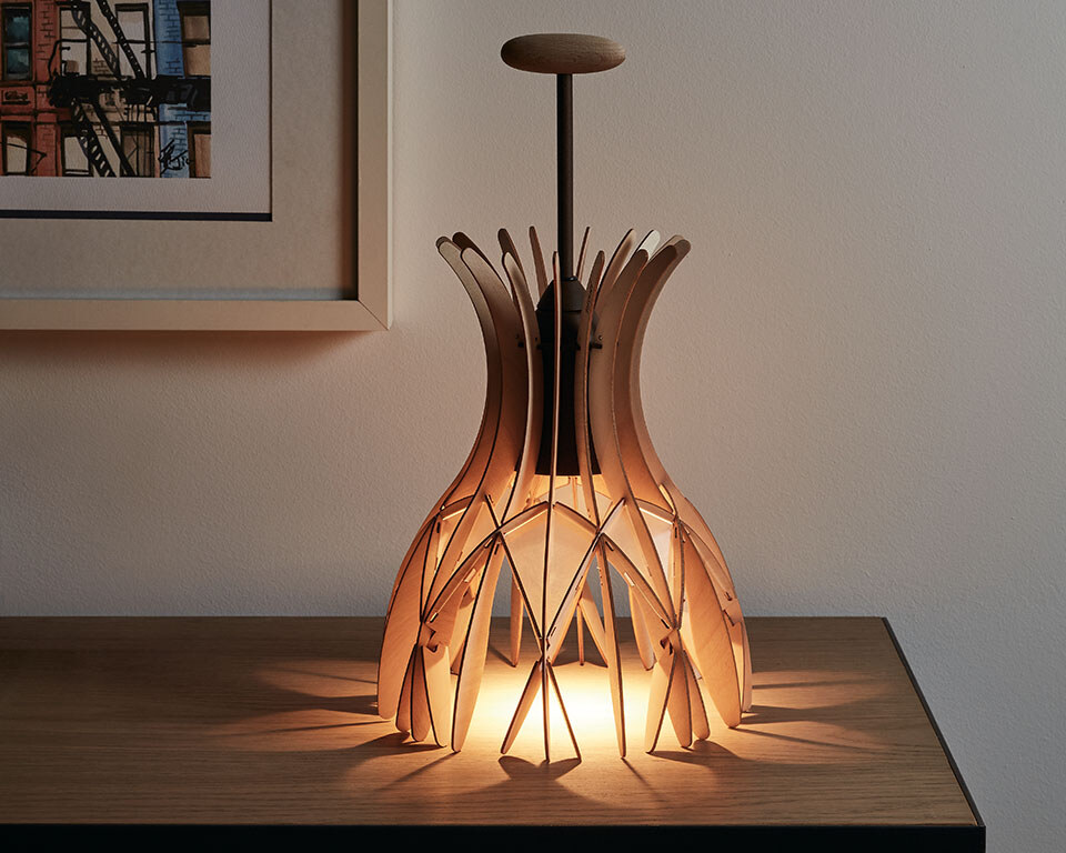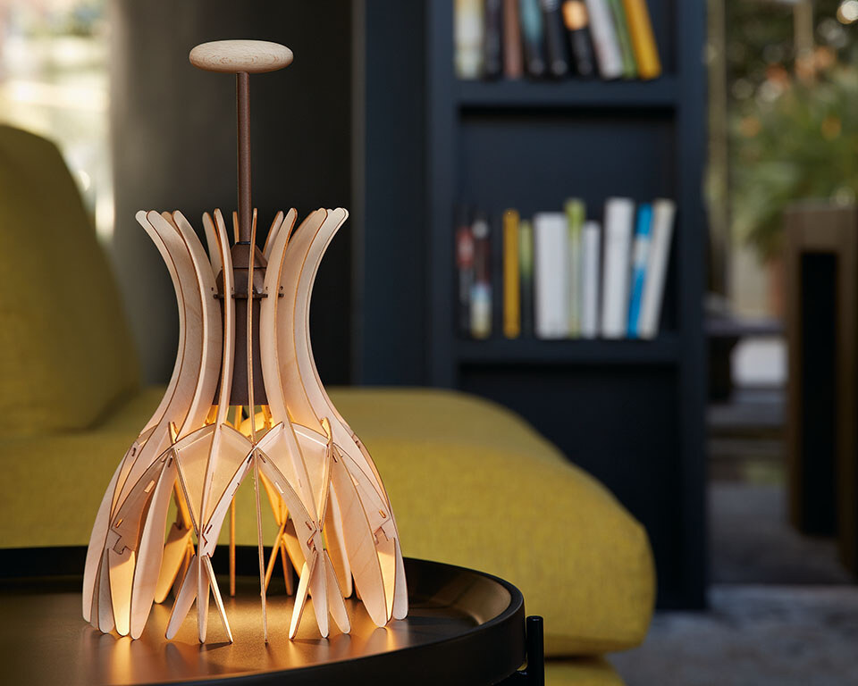 Die Tischleuchte DOMITA M/36 besticht durch ihre filigrane Holzstruktur, die eine charmante Kuppel bildet und warme Lichtakzente in moderne Räume mit klaren Linien und Eleganz setzt. Mit ihrem handgefertigten Holzschirm verleiht sie jedem Beistelltisch oder Schreibtisch eine stilvolle Note.
