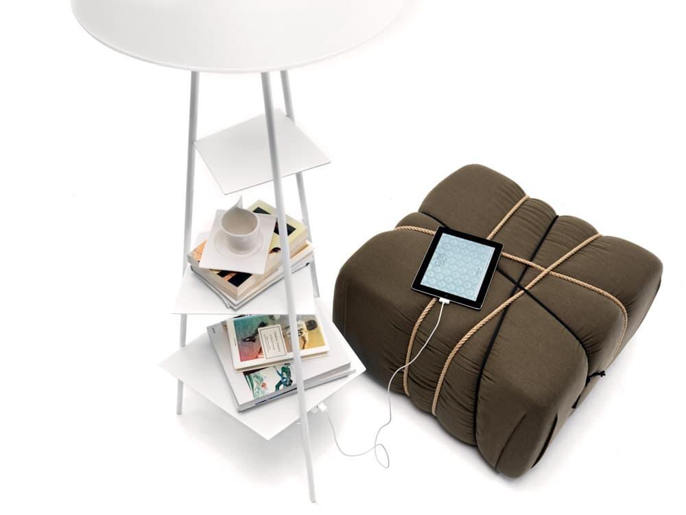 Tribeca Die Metall-Stehleuchte Tribeca ist Lichtspender und Regal in einem. Du kannst auf ihren praktischen Regalen schmucke kleine Dekoelemente in Szene setzen, oder dein Buch oder deine Zeitschrift darauf ablegen nach dem Lesen. Unter dem untersten Regalboden bietet dir Tribeca mit einem USB Anschluss zudem die Möglichkeit dein Smartphone oder Tablet aufzuladen. So ist es immer griffbereit wenn du dich gemütlich hinsetzt und es benötigst. Tribeca eignet sich auch bestens neben dem Bett als Nachttisch und Nachttischleuchte. Innovativ, originell und funktional. Das ist Tribeca.