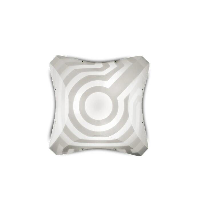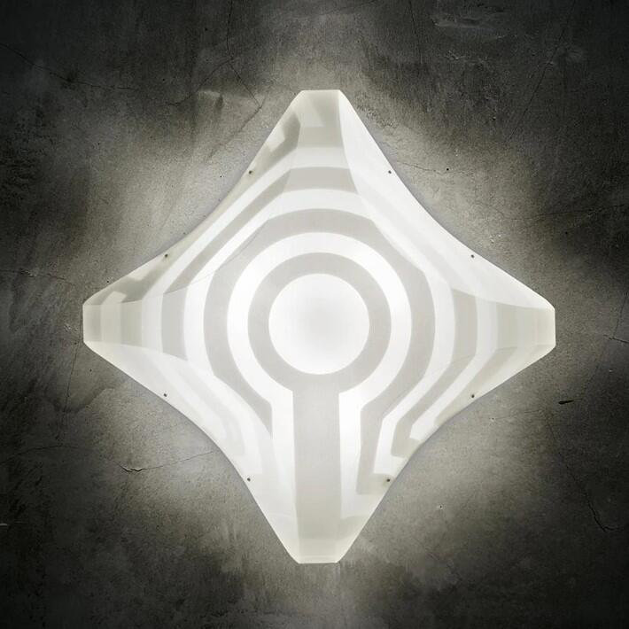 Venti Ceiling/Wall Wie ein ins Wasser geworfener Stein, erzeugt das sie kennzeichnende Dekor weiche und regelmässige Linien: konzentrische Kreise, die an den Lichtquellen immer grösser werden. Das weisse Dekor verleiht der Leuchte eine moderne und gleichzeitig zeitlose Ausstrahlung. Die Wand- und Deckenleuchte Venti von SLAMP besitzt einen senkrechten Diffusor aus dem Kunststoff Opalflex, welche auch als Stehleuchte zur Verfügung steht. Er ist weiss bedruckt mit einem faszinierenden Muster, das Venti eine futuristische Note gibt. Zahlreiche Einsatzmöglichkeiten sind denkbar.