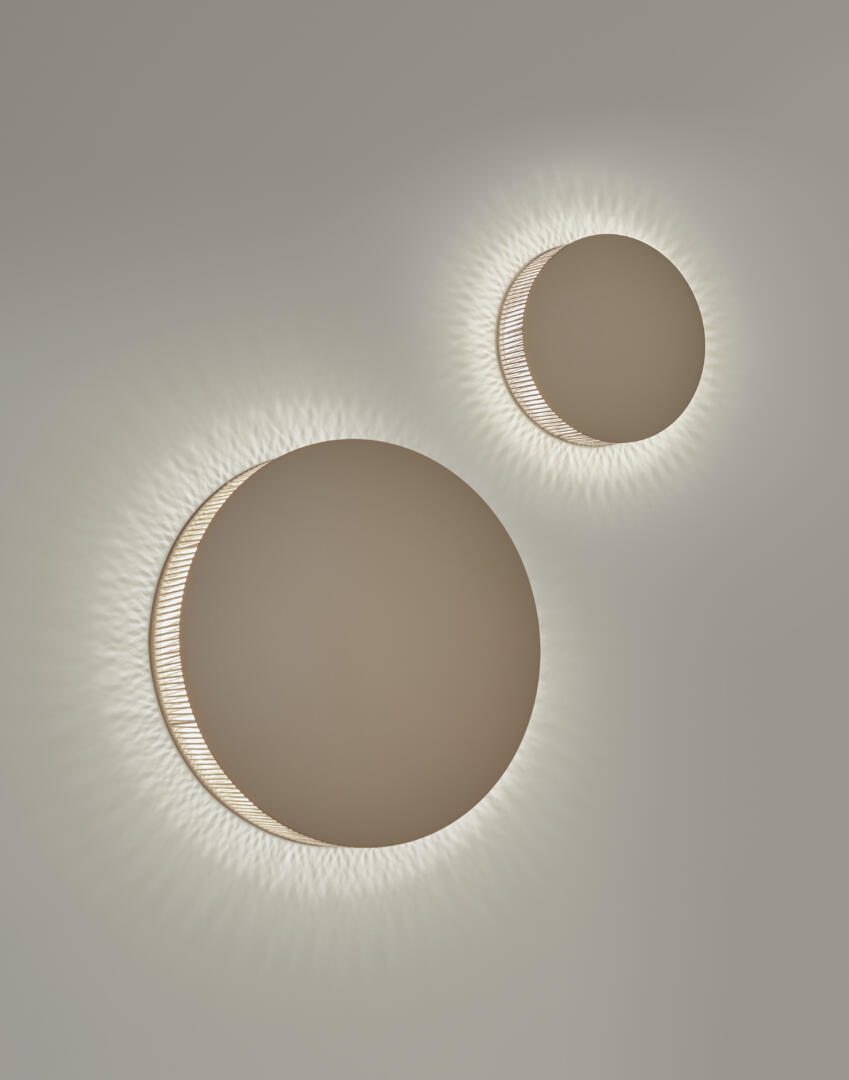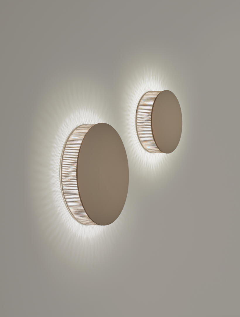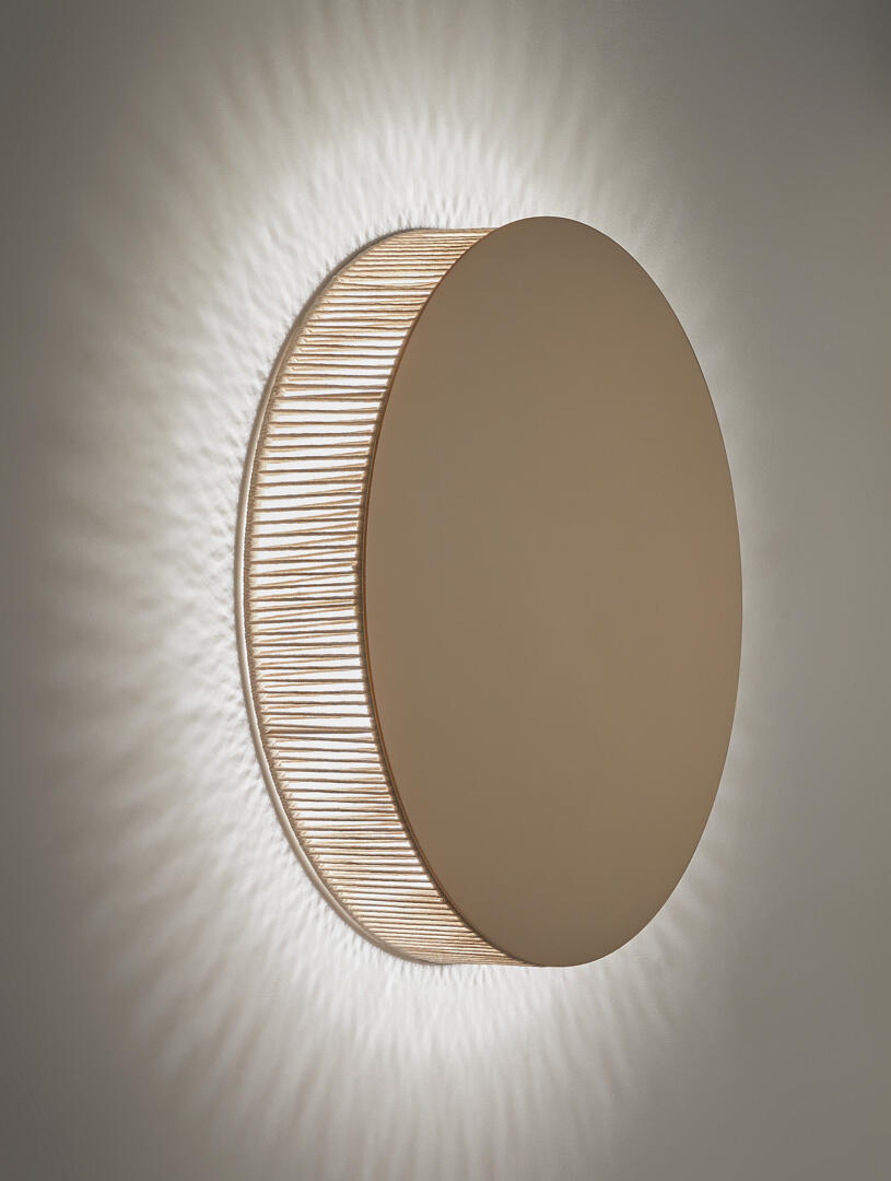Helios ist eine handwerkliche Wandleuchte, die indirektes Licht durch unregelmässige Baumwollfäden abgibt, Schatten an die Wand wirft und perfekt zur organischen Umgebung und der Wabi-Sabi-Ästhetik passt. In zwei Grössen erhältlich, bietet sie kombiniert ein wunderbares Bild und ist Triac dimmbar.