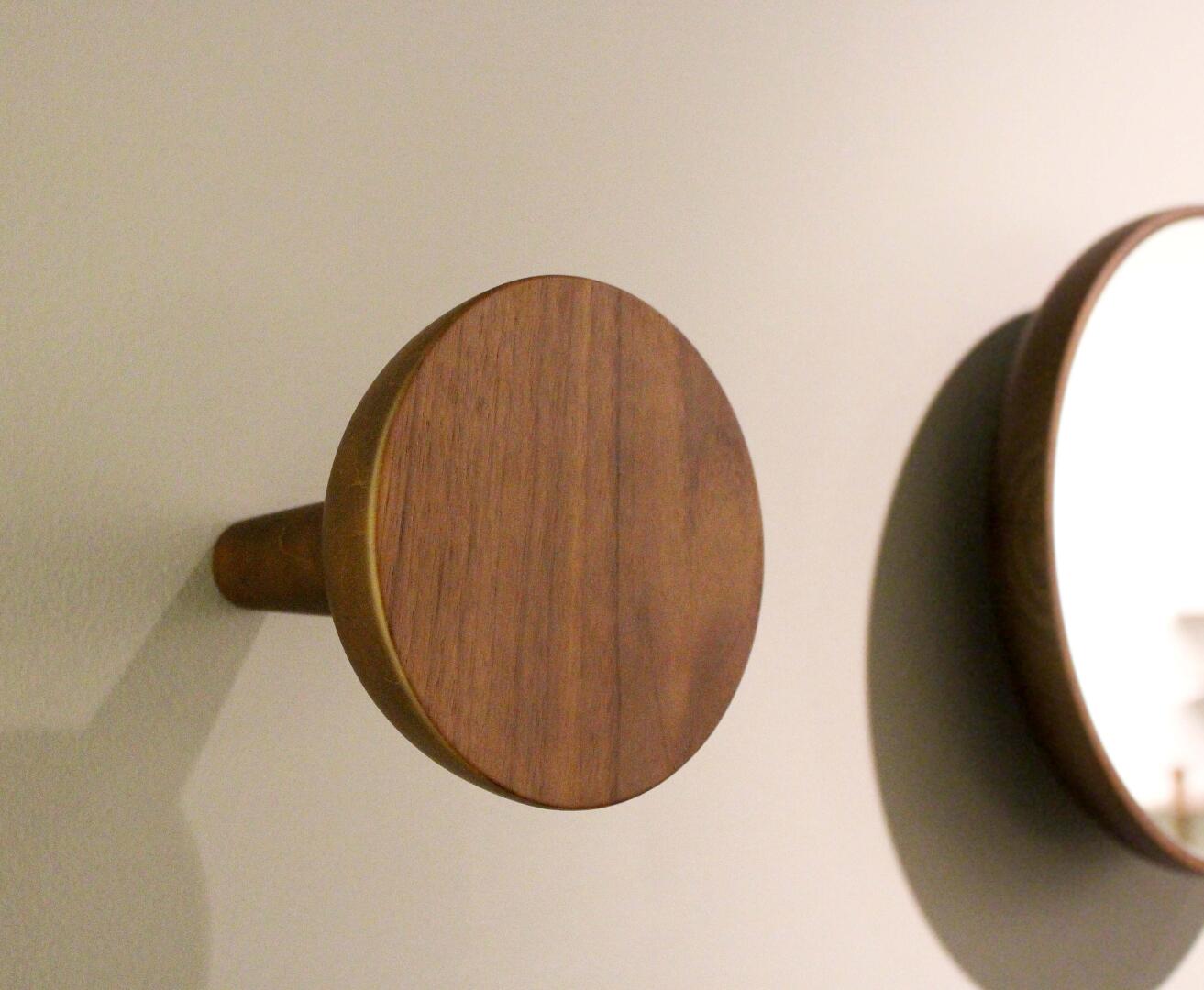 Willkommen zuhause! Das ist, was dir dieser elegante Kleiderhaken auf originelle Weise sagen will. Der runde Kleiderhaken aus Walnuss hat einen Durchmesser von 16cm. Er wird direkt an die Wand montiert. Was für eine schöne Art nach Hause zu kommen.